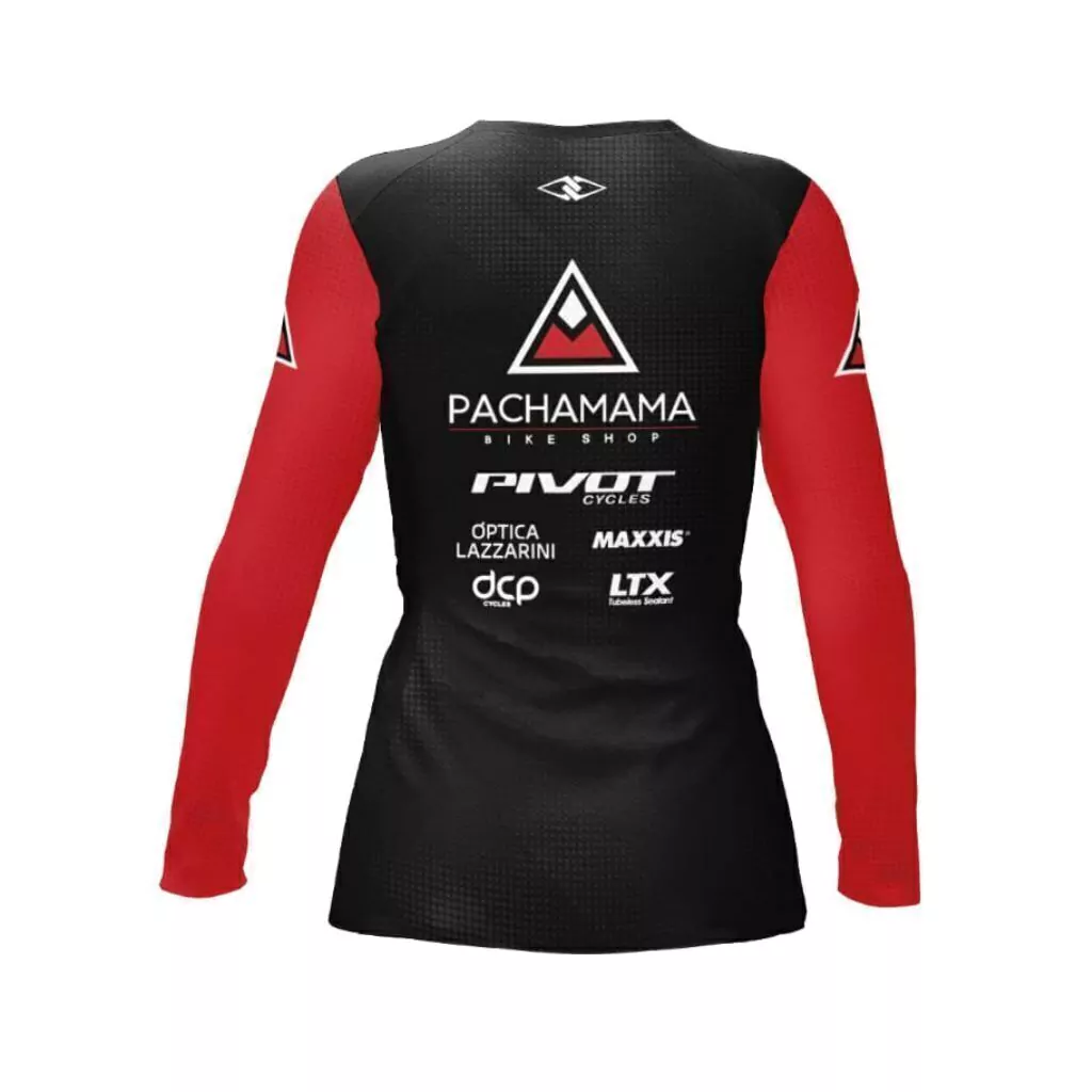 Jersey Ziroox Enduro/DH Dama Montana Team PachamamaConfeccionada con tejido Fit Way, que garantiza la absorción de la humedad y la respirabilidad de la prenda para que el cuerpo permanezca seco y fresco. Cuenta con recortes estrategicamente ubicados en tejido Energy Up (compuesto por hilados de Lycra), que tienen la particularidad de estirar en sus cuatro direcciones, permitiendo al usuario un libre movimiento.CaracteristicasTejido con gran respirabilidad y secado rápidoTejido principal con protección UV+50Estira en 4 direccionesMangas largas
