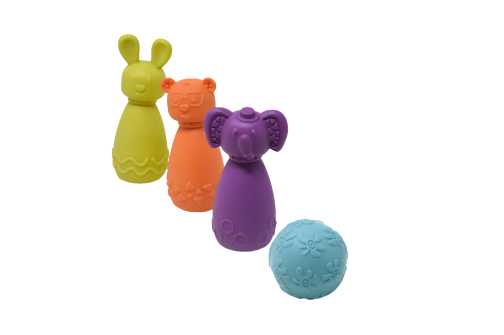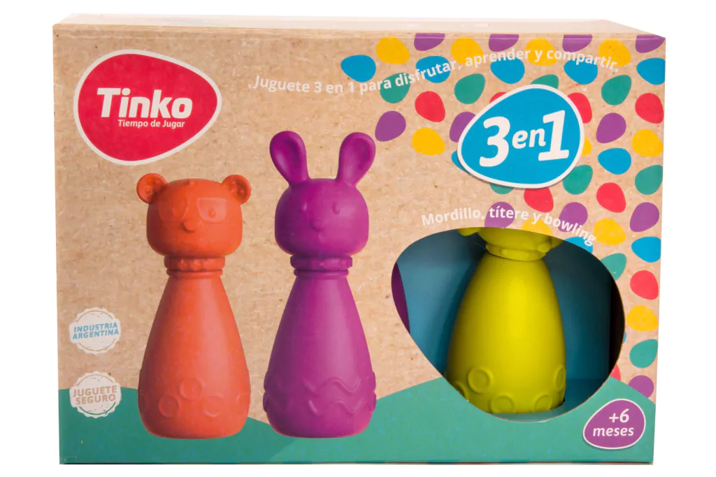 El juego consiste en 3 personajes que se pueden usar para jugar al bowling, ¡se pueden morder como un mordillo y como títeres de dedo!El niño y la niña desarrollan la habilidad de comunicación y se expresan mediante el juego.Estimula el conocimiento de objetos: a través del mordillo el/la bebé descubre al objeto mediante su boca. Sirve como modo de descarga al momento de la salida de los primeros dientes.Incentiva los vínculos y la comunicación: el títere estimula al niño y a la niña en el uso de las palabras, los movimientos y los gestos mediante las habilidades de comunicación que se expresan a través del juego.Desarrolla nuevas habilidades: el bowling colabora en el desarrollo de la inteligencia corporal y facilita la coordinación de movimientos con intención y propósito.Producto suave, no tóxico ¡y fácil de limpiar!