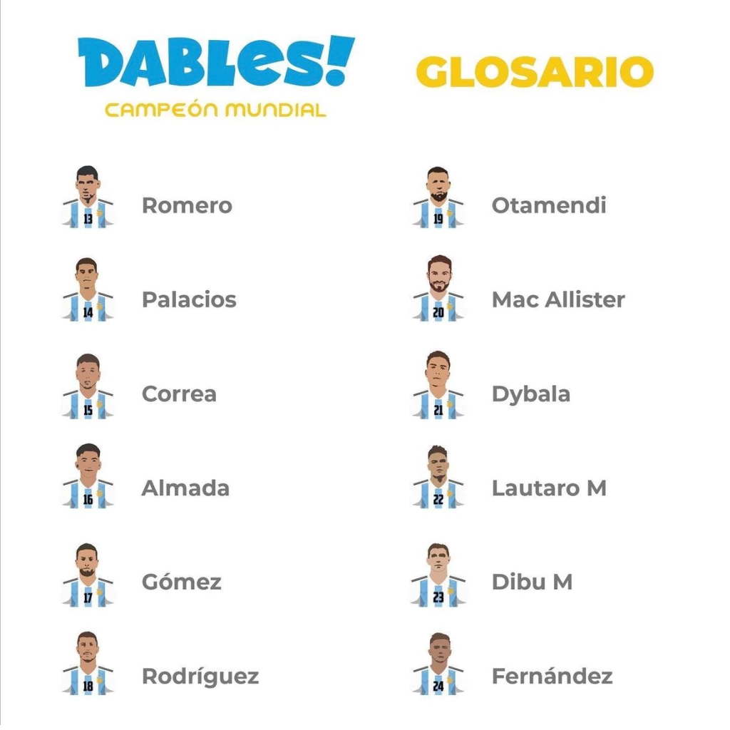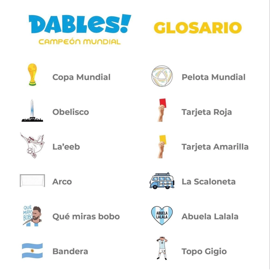 Llego el juego Dables en su versión CAMPEÓN MUNDIAL!Un juego de cartas para toda la familia. Sin turnos, todos al mismo tiempo, el que se queda sin cartas... GANA!Como jugar?1. Dividi todo el mazo en partes iguales entre todos los jugadores.2. Pone la/s carta/s que sonra/n en el medio.3. Busca la coincidencia entre las imagenes de tu carta y alguna de las imagenes de la carta del centro.4. Deci la imagen en voz alta y apoyala encima de la carta del medio.En caso de que dos jugadores digan la imagen al mismo tiempo, la carta que queda es la que primero toca el mazo.*CAMBIOS: los gastos de envío por cambio están a cargo del comprador