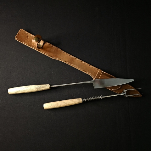 Juego Parrillero con expulsador en acero inoxidable. Encabado en madera estacionada con detalles en bronce .MEDIDA TOTAL 41cm.CONSULTAR DISPONIBILIDAD DE MODELOS ANTES DE SU COMPRA.