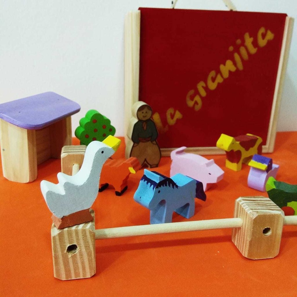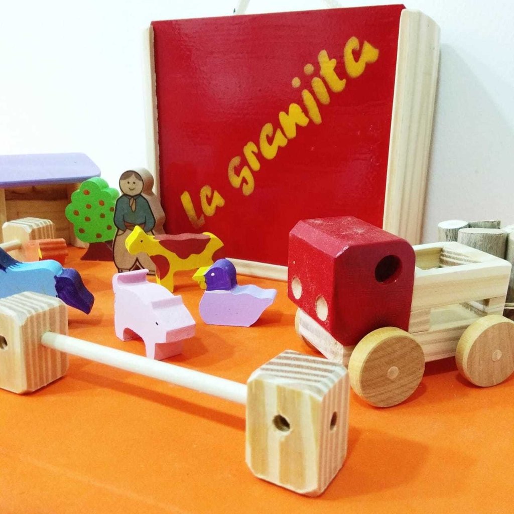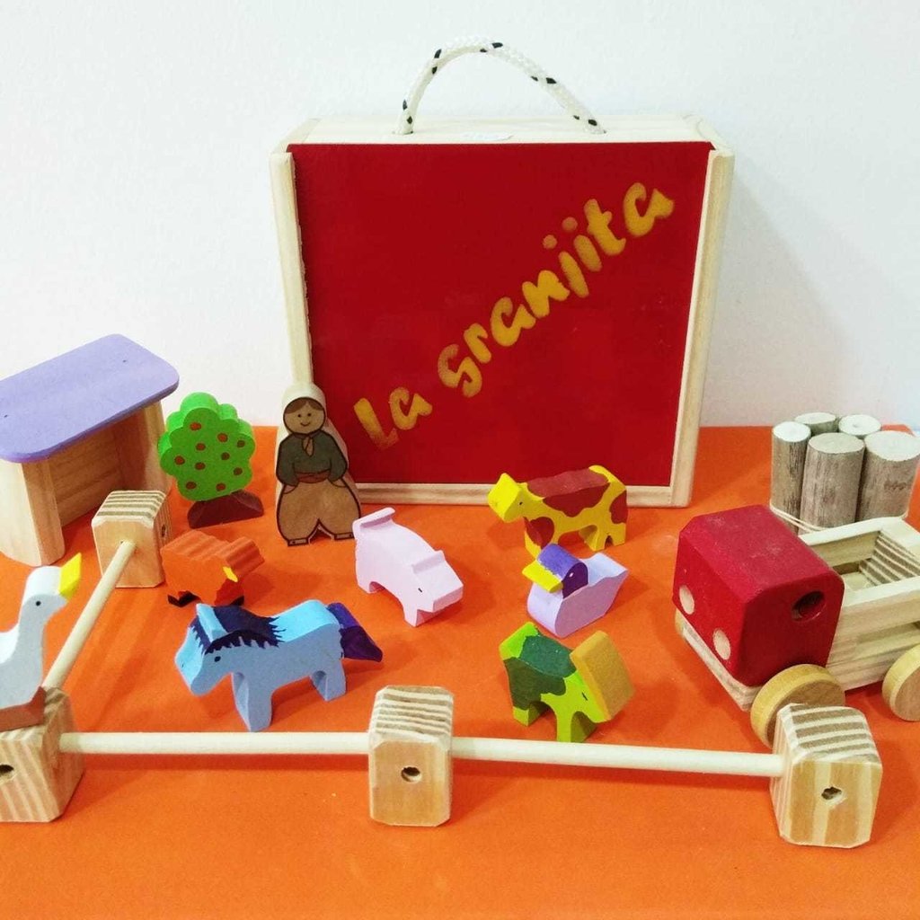 En una práctica caja de madera con tapa corrediza se encuentra esta versión de la granjita, que incluye:1 casita chica.1 corral desarmable.1 granjero.1 árbol.7 animales.1 camioncito.1 atado de leña.Este juego:Permite la dramatizaciónDesarrolla el área socioafectiva y sensorial.Estimula la creatividad y el lenguaje.Permite a los peques conocer un poco más la naturaleza, tomando contacto, a través del juego, con distintos animales y elementos propios de una granja.Los más grandes pueden utilizar los animalitos también como siluetas para dibujar.Edad sugerida: a partir de 3 años.