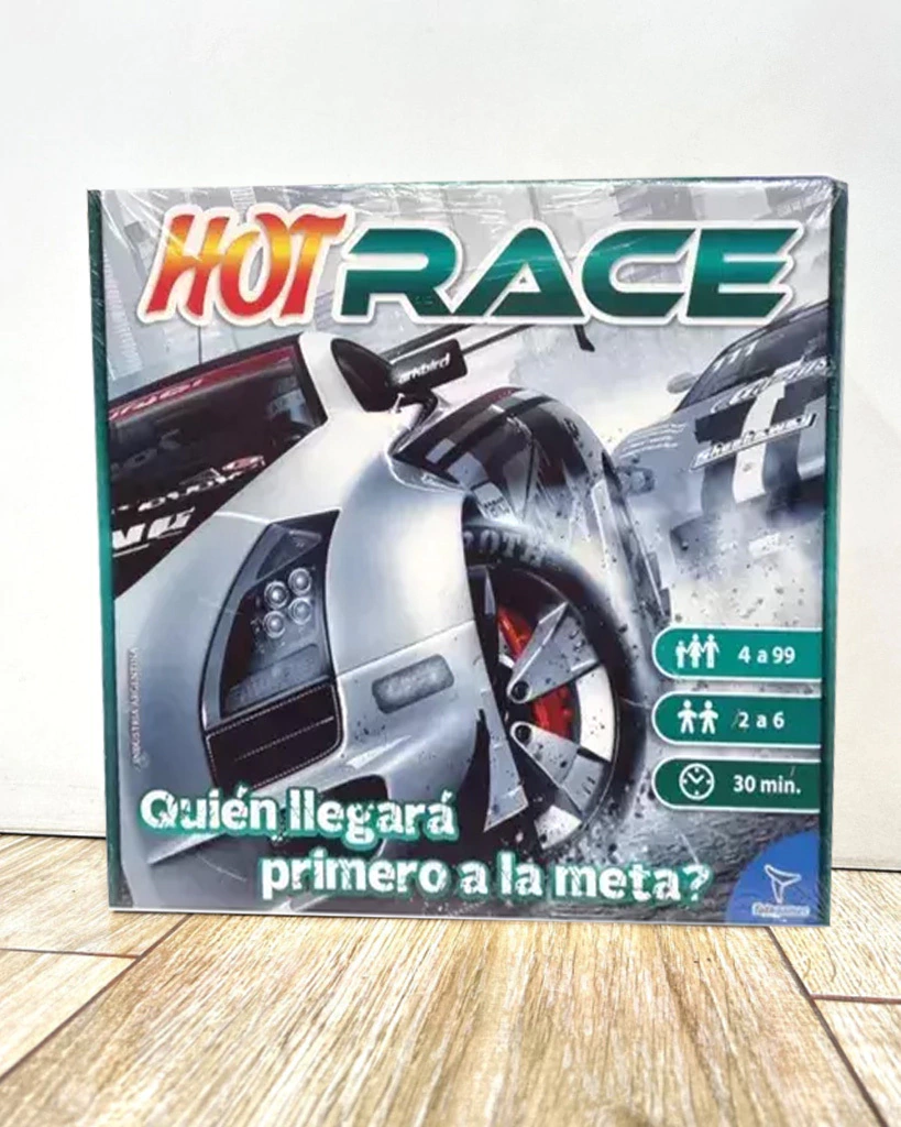 El objetivo del juego es ganar la carrera siendo el jugador que llegue primero a la casilla final con su auto superdeportivo, contando camino por los puentes y evitando los accidentes de pista.Contenido:1 Tablero6 Peones de juego Autos deportivos2 DadosInstrucciones de juegoMedidas aproximadas de la caja:26x28 cm