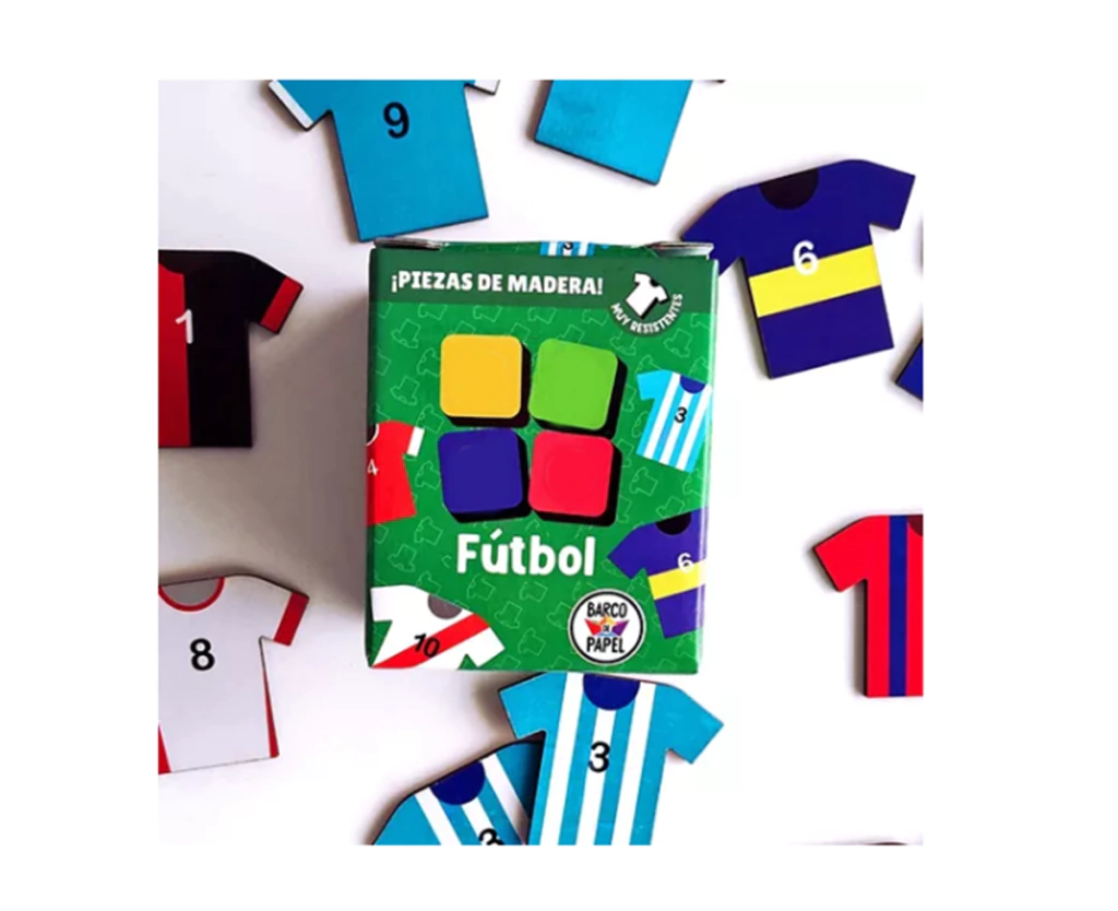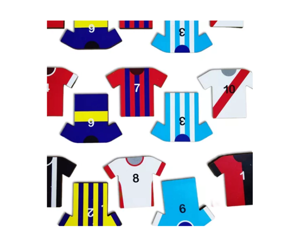 JUEGO DE MEMORIA CAMISETAS DE FUTBOLJuego de memoria con 20 fichas de madera con diferentes formas.Clásico juego donde se dan vuelta todas las fichas sobre una mesa y por turnos, cada jugador debe tratar de encontrar los pares iguales con la ayuda de su memoria. El jugador que más pares encuentre es el ganador.Las piezas son de madera super resistente y llenas de color.Ideal para divertirse desde los 3 años en adelante.CADA FICHA MIDE 6X4CM