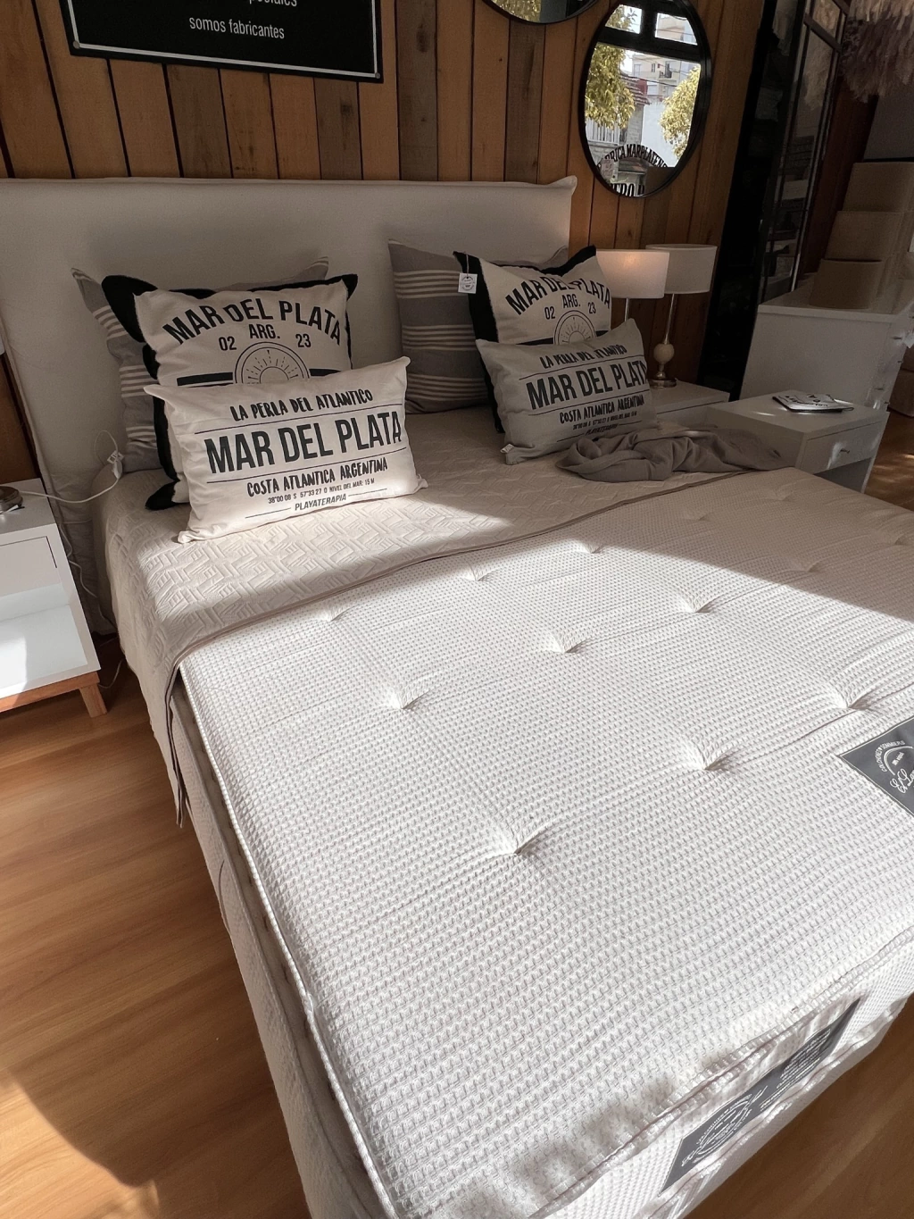 Juego de colchón Jacquard Crudo de Algodón resortes Biconicos & Sommier Jacquard Crudo de Algodón + Cubrecolchón espuma Soft de poliuretano .