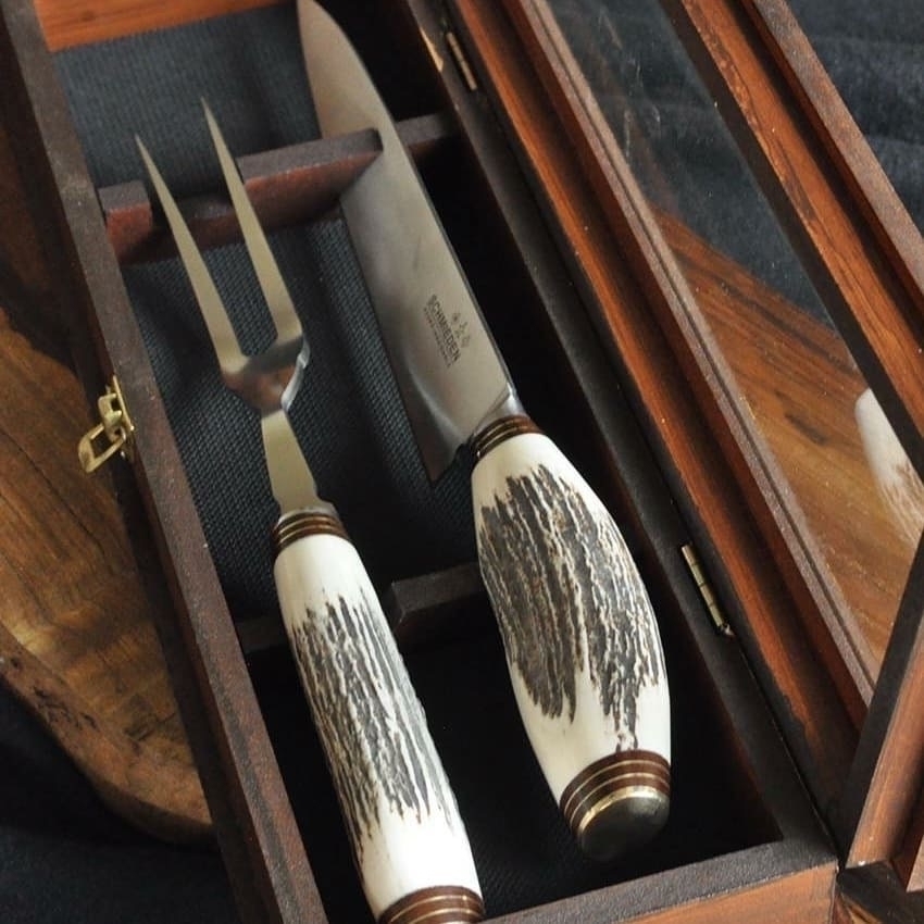 Juego parrillero de trinchar de 18 cm de hoja de acero inox 420. • Cabo de ciervo regional con boton bronce. La mejor calidad al mejor precio!! Presentacion unica en Caja de madera vidriada (consultar por grabado en hoja o caja). Ideal para regalo o uso personal para el asador de la casa. Elegí calidad. Somos parrillasarg, comprá con seguridad y confianza. Miles de ventas en el sitio web oficial. Asesoramiento las 24 hs.