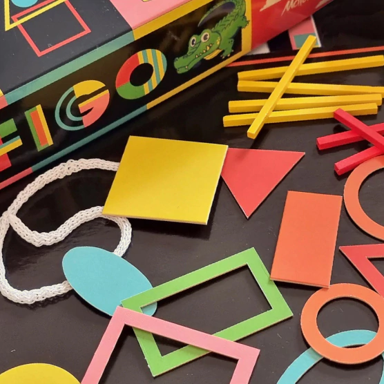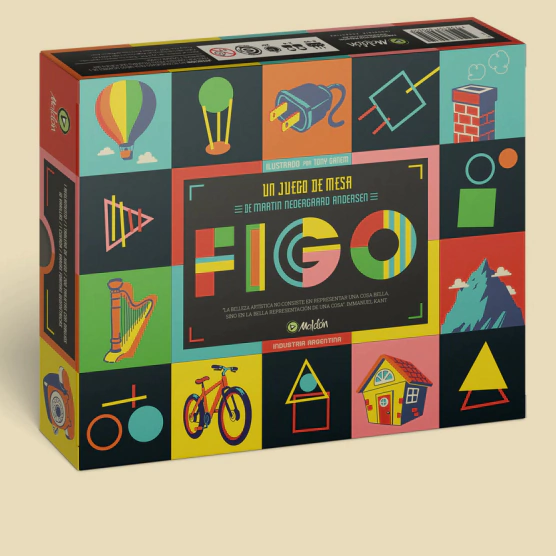 FIGO - UN JUEGO DE FORMAS Y FIGURASEl objetivo del juego es poder representar una imagen con la menor cantidad de elementos posibles.En cada turno, un jugador hará de artista y el resto intentará adivinar lo que está representando en la pizarra con las figuras.Tenés dos minutos para representar el objeto de tu carta con los elementos que ofrece el juego. Pero ¡OJO! hay que usarlos con criterio ya que cada elemento usado tendrá un puntaje determinado.No se puede hablar ni gestualizar absolutamente nada!El resto de los jugadores de la mesa intentará adivinar el objeto arriesgando todas las palabras que quieran. No hay límite de intentos.Si un jugador adivina el objeto del artista, ambos sumarán puntos.Quien más puntos haya acumulado será el ganador..Jugadores: 3 a 8 jugadoresTiempo: 30 minutosEdad: 8+ años