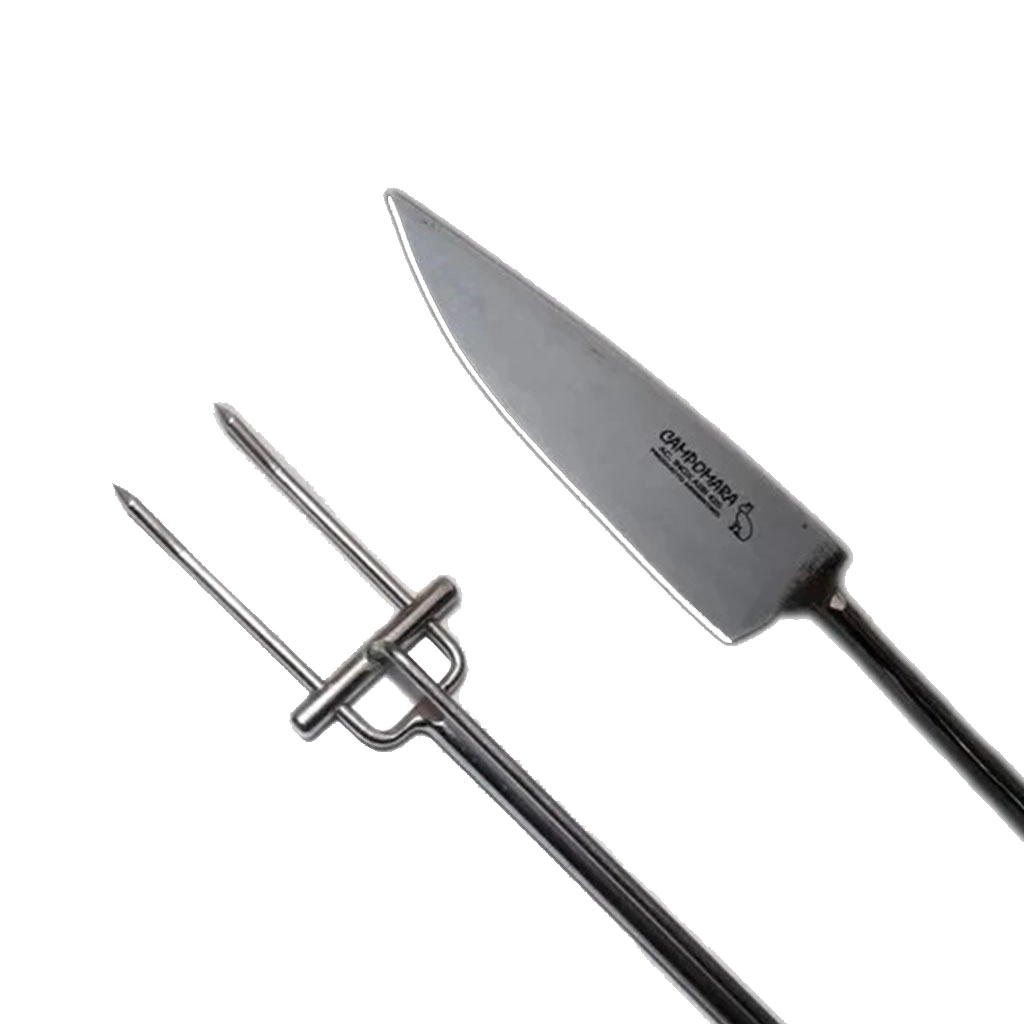 JUEGO PARRILLERO PINCHE ASADOR EXPULSADOR + CUCHILLO FULL ACERO INOXIDABLE
