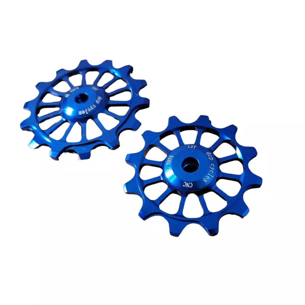 Juego Roldanas/Ruedas De Cambio Dcp Cycles p/ Sram-Shimano 10-11v Mtb-RutaLas Roldanas Dcp Cycles, innovando en el Mercado con susRodamientos Cerámicosllegan alciclismocon la intención de demostrar que en este deporte los pequeños detalles son los que marcan la diferencia, Reduciendo la fricción para aprovechar al máximo la inercia generada en la fase de pedaleo, es decir,SE NECESITA MENOS ENERGIA PARA ALCANZAR LA MISMA VELOCIDAD Y EL BENEFICIO ES QUE SE GASTARÁN MENOS VATIOS, una opción muy tentadora.AplicacionesTransmisiones Sram y Shimano 10v y 11v (Mtb o Ruta): 2 Roldanas de 12 Dientes.NOTA:Elige la transmisión que tienes y nos encargamos de mandarte las Roldanas correctas (El precio publicado es por el par, no se venden individuales)EspecificacionesModelo: Wheel Pulley Rodamiento CerámicoColor: DoradoTamaños : 2 Rold. 12 dientesPeso: 15 Gr.Material: Aluminio CNC 7075Acabado: AnodizedTratamiento Térmico : Optima DuraciónMontadas sobre rodamientos CerámicosDientes con formato “Narrow Wide”Excelente calidadIdeal para customizar tu pata de cambios o para reemplazar las Roldanas desgastadas.Diseñado en Australia
