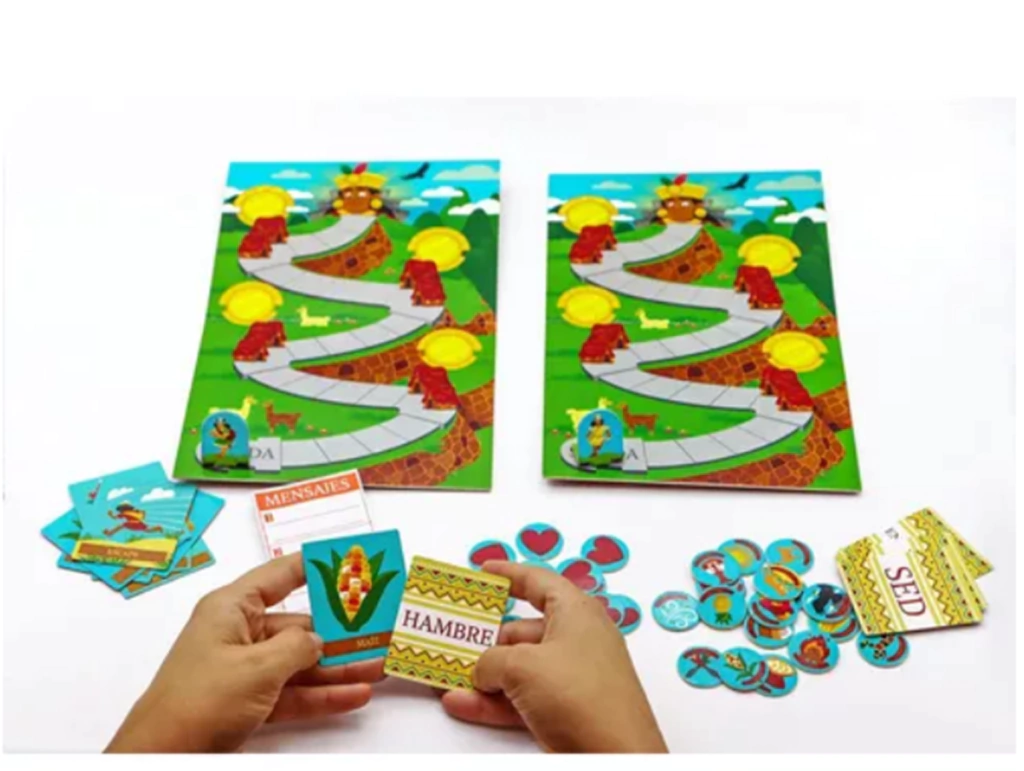 JUEGO DE MESA MEMORIA DE CHASQUIJUEGO INFANTIL ESTIMULA LA MEMORIA CHASQUIPara ser un verdadero CHASQUI, debes recordar cada mensaje que te den en el camino.Los Chasquis eran jóvenes que recorrían extensos caminos del estado Inca para llevar mensajes de una posta a la otra. Eran personas de confianza para el Inca y estaban bien preparadas para esta tarea.Este juego te desafía a recorrer caminos tratando de no olvidar ni una palabra de los mensajes que te hayan dado.¿COMO SE JUEGA?Cada jugador recorre su propio camino de postas, llevando distintos mensajes y superando adversidades. El ganador será quien llegue primero al Inca y recuerde exactamente cada mensaje que se le fue dando durante su recorrido.¿PARA QUÉ SIRVE?Ayuda a estimular la memoria y concentración. Te sumerge en el fantástico mundo de los chasquis mientras te diviertes jugando.