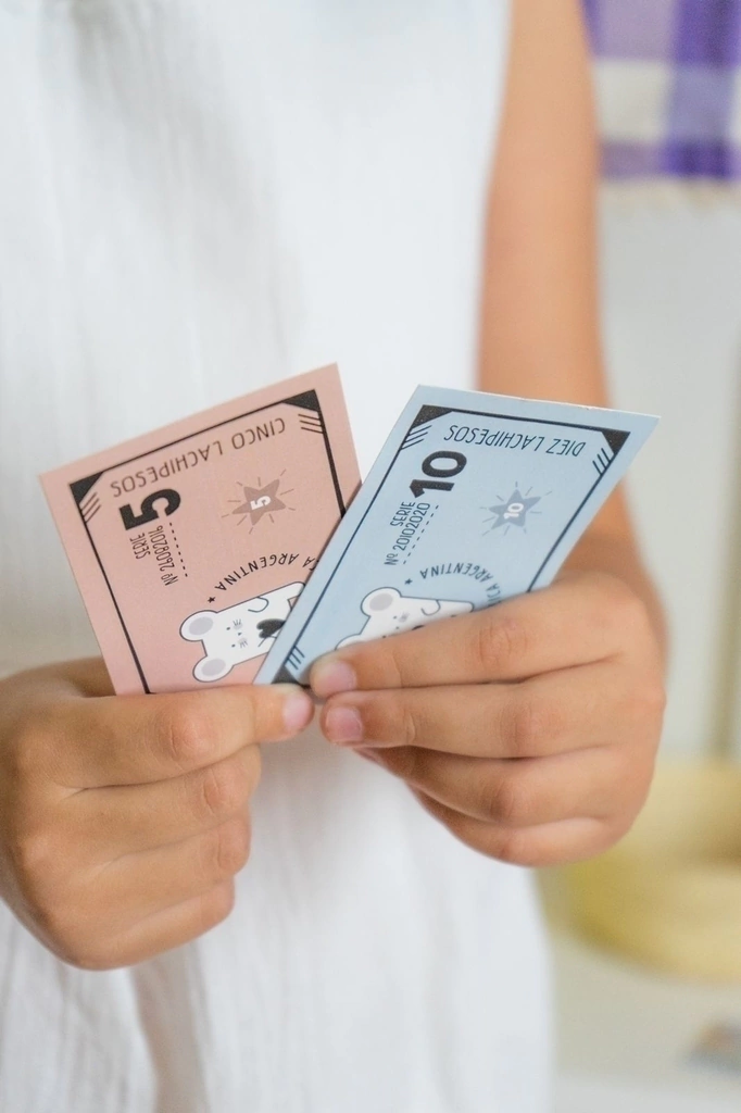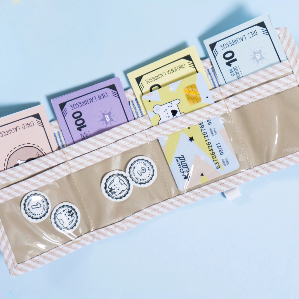Juego super completo para jugar a comprar y vender. ¿Quien no jugo, y quien no juega a comprar, a vender, a tener un negocio? Es un gran complemento con las comiditas o cajas registradoras.Tiene todo lo necesario para armar ese negocio "de jugando". También es la gran oportunidad para empezar a hablar de dinero, de ahorro, y de educación financiera. Para dar los primeros pasos en operaciones matemáticas.CONTENIDO5 billetes de 55 billetes de 105 billetes de 205 billetes de 505 billetes de 1001 anotador engomado con menú "restaurante"1 anotador engomado de "panaderia"1 anotador engomado de "verdulería"1 tarjeta de crédito plastica, que parece DE VERDAD1 billetera con divisiones, se puede usar realmente, no es solo para jugarNO INCLUYE EL LAPIZTodo viene en una bolsita de tela.
