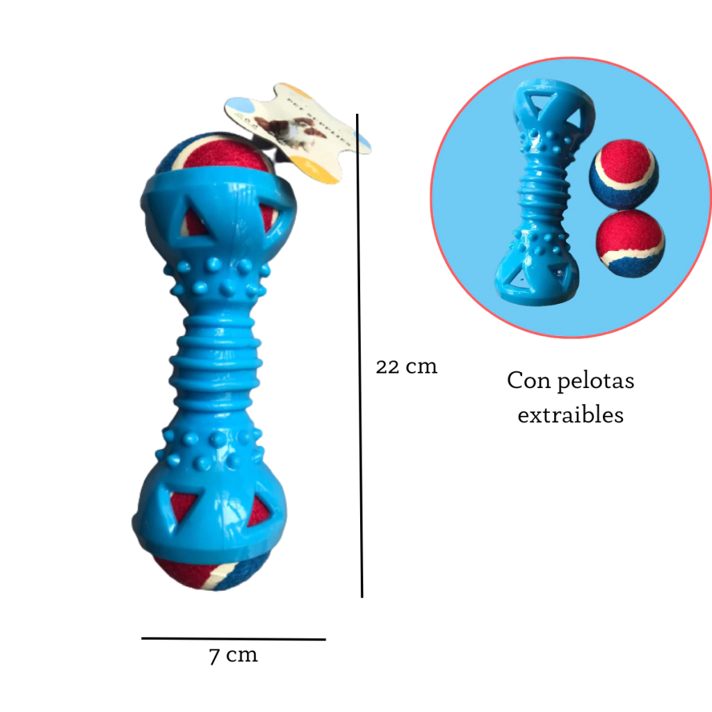 Juguete mancuerna de goma con pelotas extraibles para perros