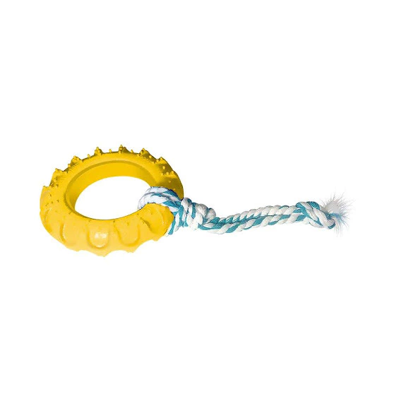 Juguete Rueda de Goma Rally Dog con Cuerda N3 (15cm)--------------------------------------------------------------------------------------El juguete perfecto para los perros a los que les gusta buscar, recoger y masticar.Hecha de nuestra goma súper duradera. Perfecto para juegos de buscar y recoger o para sesiones de masticación.