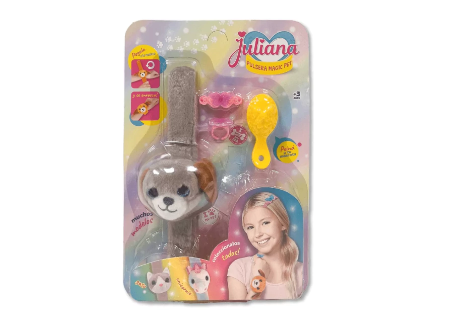 Juliana Pulsera mágica enrollable con mascota y accesorios + REGALO SORPRESA!!Descripción del producto• Pulsera mágica con mascota (Perro)• Marca: Juliana• Incluye peine, anillo, hebilla• Apoyá la pulsera contra tu muñeca y se enrolla sola!• Medidas del packaging: 28 cm x 19 cm• Medidas de la pulsera: 21,5 cm x 4 cm• Edad recomendada: +3 Años• Las especificaciones, colores y contenido pueden variar con respecto a la ilustración