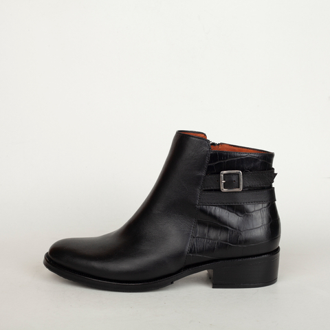 Botienta en Cuero Negro Clásico K133/08Descubre la elegancia y versatilidad de laBotienta en cuero negro clásicocon aplique de hebilla, un modelo que no puede faltar en tu guardarropa. Su diseño único combina un sofisticado talón encroco negro, brindándole un toque distintivo y moderno.Características Destacadas:Capellada: Elaborada encuero vacuno, que se adapta perfectamente a la forma de tu pie, ofreciendo una comodidad excepcional durante todo el día.Forro: También en cuero vacuno, proporcionando una suavidad inigualable y un clima agradable para tus pies.Suela: Fabricada en cuero conmedia suela anti deslizante, ideal para un agarre seguro en cualquier superficie, lo que la convierte en una opción perfecta para tu día a día.Taco: Con un elegantetaco de 3 cm, que añade la altura justa sin sacrificar la comodidad.Esta botienta es perfecta para cualquier ocasión, desde una reunión de trabajo hasta una salida casual con amigos. Su diseño atemporal te permitirá combinarla fácilmente con diferentes estilos, ya sea con vestidos, faldas o pantalones.Calce:El calce es normal. Recomendamos elegir el número que usas habitualmente en calzado para asegurar que cada paso que des sea una experiencia placentera.