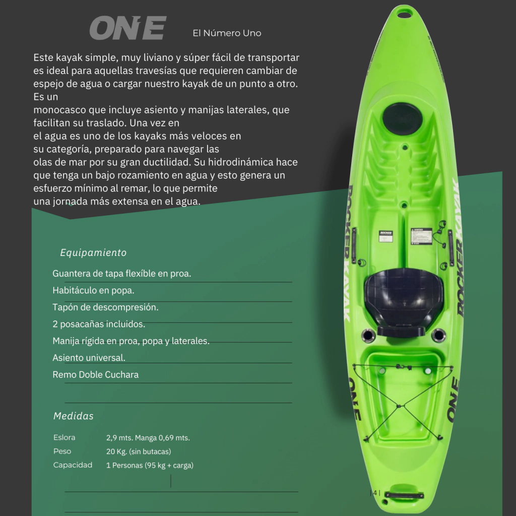 Este kayak simple, muy liviano y super fácil de transportar es ideal para aquellas travesías que requieren cambiar de espejo de agua o cargar nuestro kayak de un punto a otro.