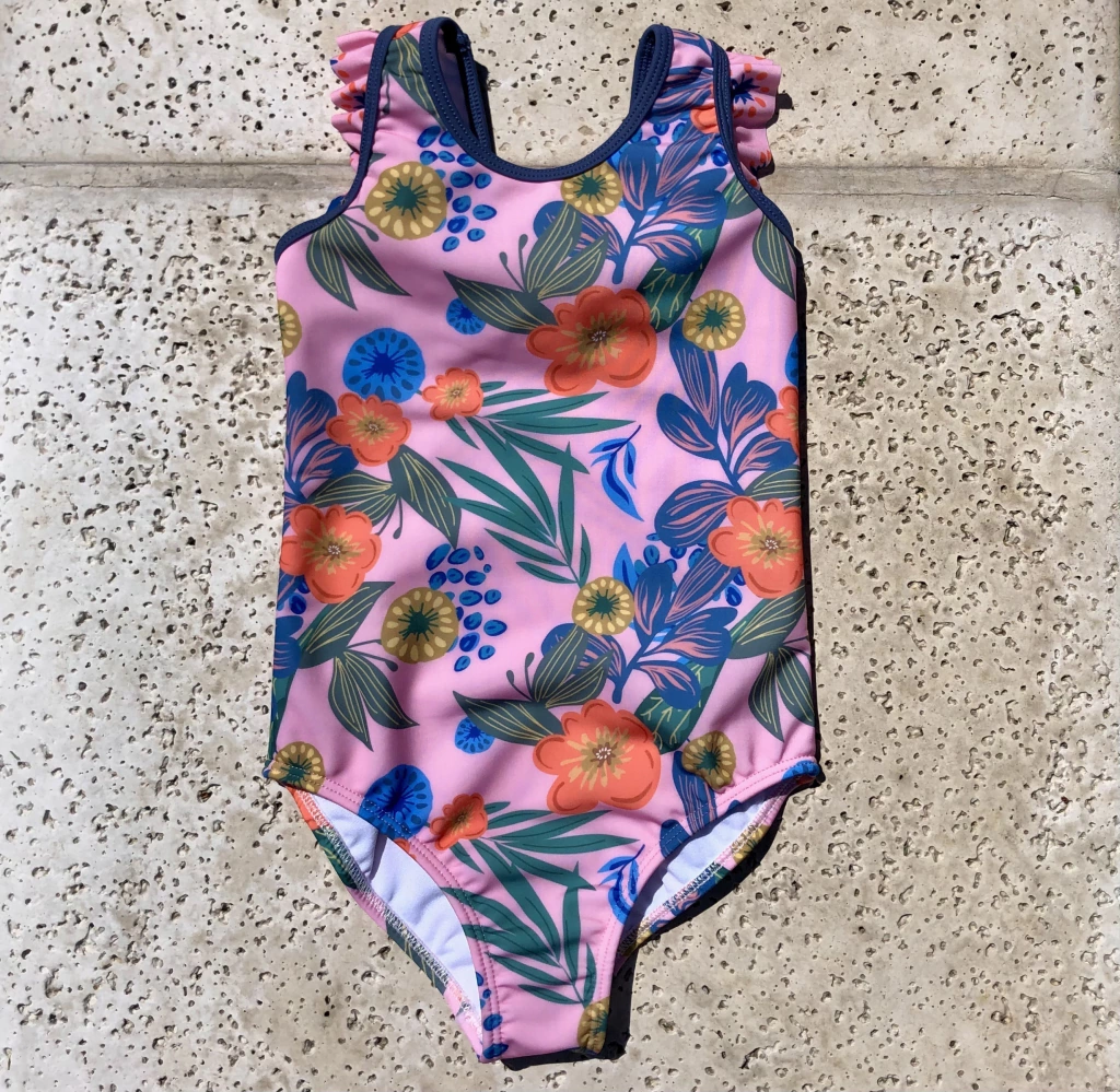 Talle 4,6 y 8 traen voladitos en breteles, en talle 10 al 14 viene sin volado.