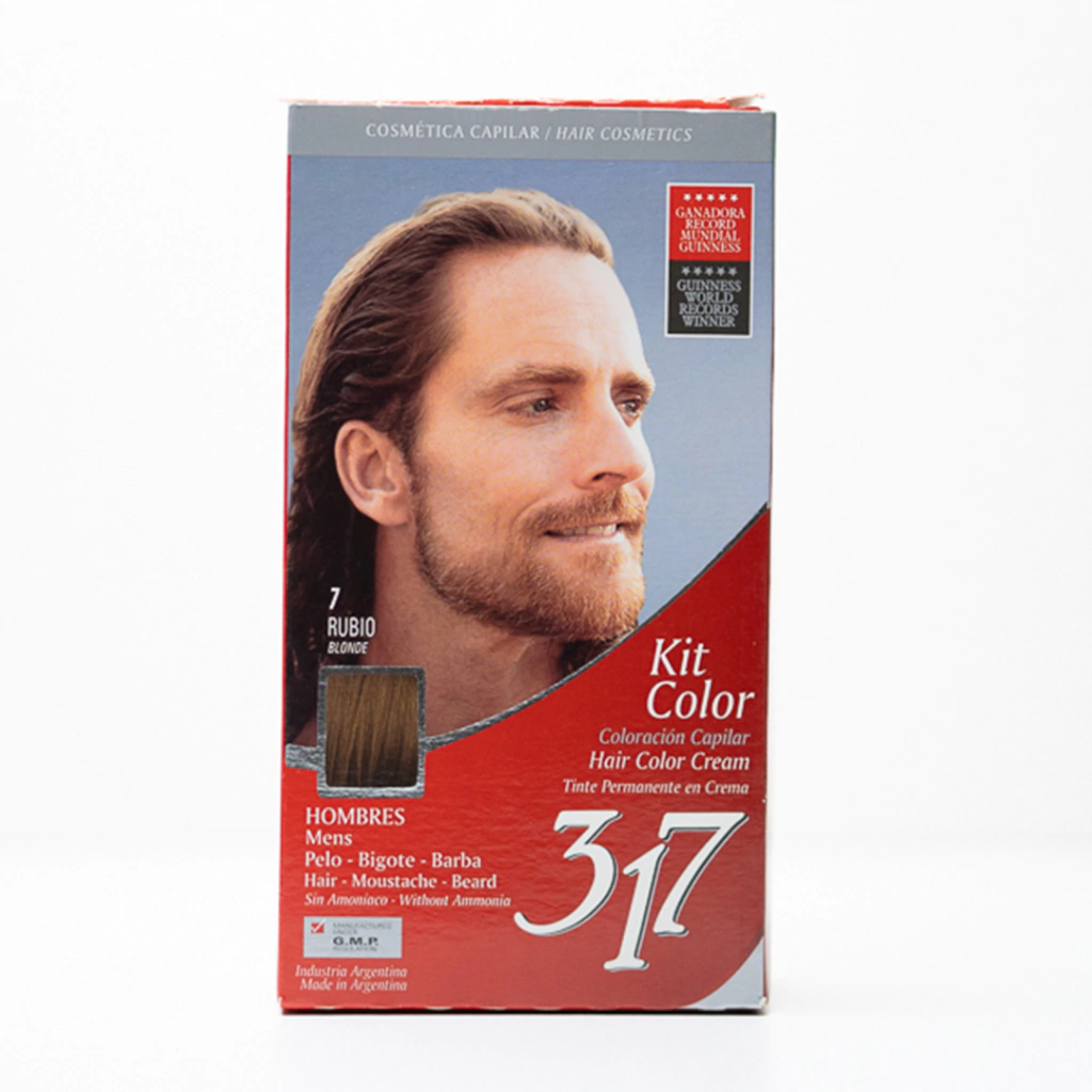 LANZAMIENTOTintura KIT 317 MENColores intensos sin amoníaco.Perfecta para pelo, barba y bigote.Contiene:Pomo de coloración capilarRevelador oxidante con aplicadorShampooCrema enjuaguePar de guantes