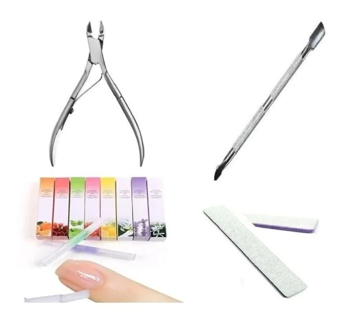 **** Kit completo Manicuria ***Incluye- 1 * Alicate Corta Cuticula- 1 * Repujador Acero- 1 * Aceite Revitalizador- 1 * Lima 100/180(SE ENVIA EN FORMA SURTIDA SEGUN DISPONIBILIDAD)