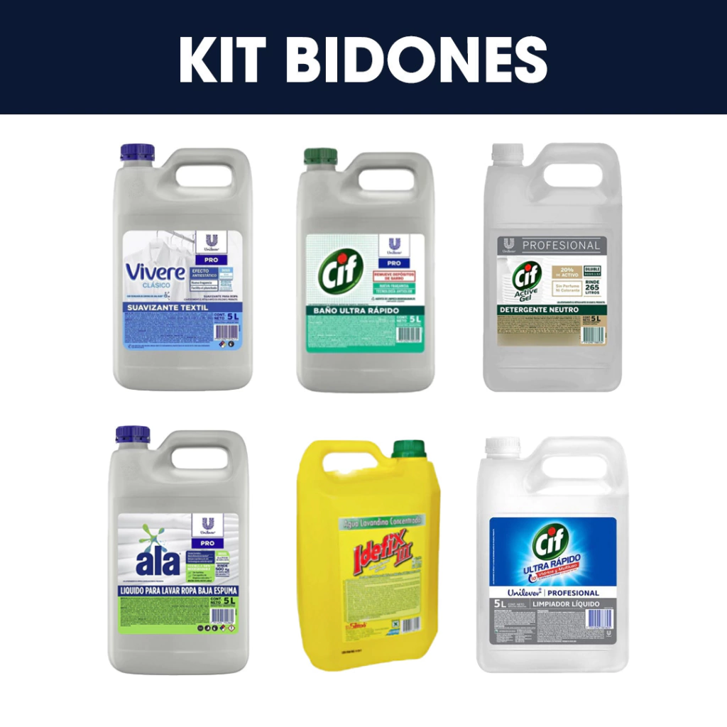 Contiene:1 DETERGENTE CIF ACTIVE GEL NEUTRO X 5 LTS1 LAVANDINA CONCENTRADA 60G IDEFIX III X 5LTS1 JABON PARA ROPA SKIP LIQUIDO X 5 LTS1 SUAVIZANTE PARA ROPA VIVERE X 5 LTS1 CIF LIMPIADOR LIQUIDO VIDRIO PROFESIONAL 5L1 CIF LIMPIADOR LIQUIDO BAÑO PROFESIONAL 5L