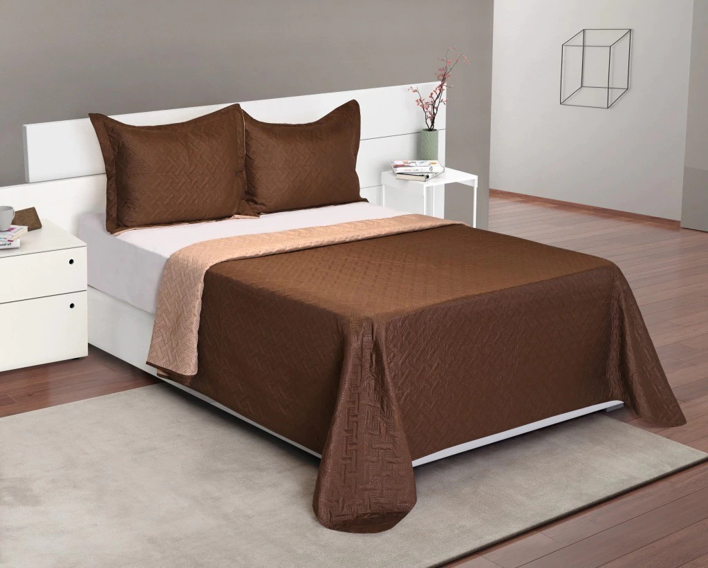 Cubrecama Liso C/ FundasTransforma el ambiente de tu dormitorio con el cubrecama liso, una opción elegante y versátil. Disponible en dos tamaños para adaptarse a tus necesidades:1½ Plaza: 160 cm x 240 cm aproximadamente, incluye 1 funda de 50 x 70 cm.2½ Plazas: 220 cm x 240 cm aproximadamente, incluye 2 fundas de 50 x 70 cm.Este cubrecama no solo ofrece una estética sofisticada, sino que también proporciona calidez y confort. Elaborado con materiales de alta calidad, es ideal para darle un toque de estilo y personalidad a tu espacio.Recomendaciones de cuidado:Lavar antes de usar para garantizar la máxima suavidad.Lavar colores oscuros por separado para evitar transferencias de color.Evitar el exceso de suavizante para mantener la textura original.Lavar con agua tibia para proteger las fibras.No usar blanqueador, pues puede dañar el estampado.Convierte tu dormitorio en un refugio de estilo con el cubrecama liso, perfecto para cualquier temporada del año.