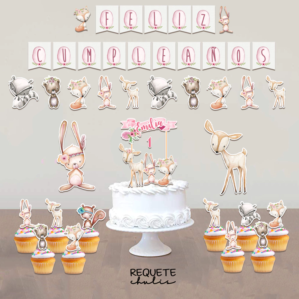 Kit cumpleaños deco mini Animalitos del bosque boho chic