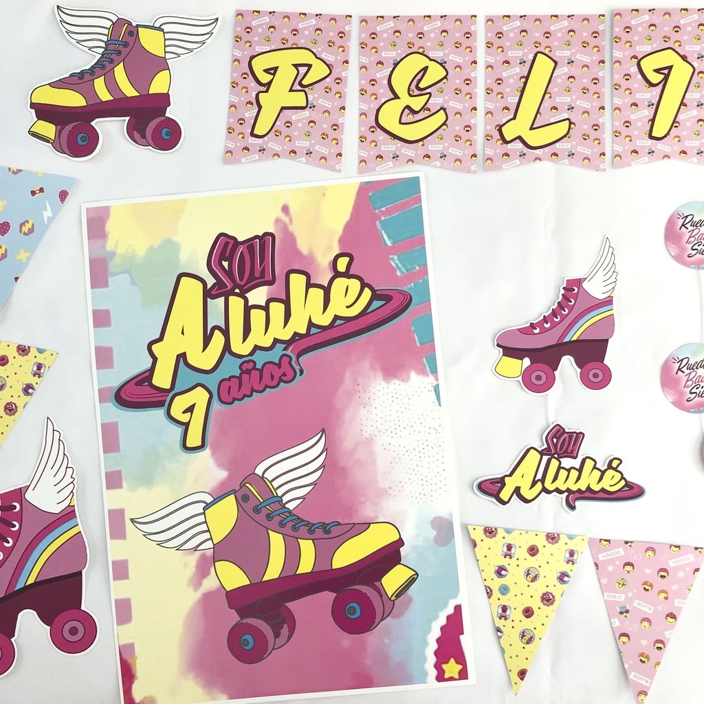 KIT DECORACIÓN CUMPLEAÑOS VALIJITA FELIZ CUMPLEINCLUYECake topper (adorno para la torta)Guirnalda banderines con texto FELIZ CUMPLEAÑOSGuirnalda decorativa (10 banderines/piezas).10 toppers para muffins.Cartel personalizado 30cm x 45 cm4 papeles con estampado de la temática tamaño A4, para usos múltiples (envoltorio de golosinas, fajas para decorar frascos, servilleteros, u otro elemento que se te ocurra)10 globos de colores lisos.2 figuras de personajes de 26cm de alto.DATOS PARA PERSONALIZARUna vez que realizás la compra, nos enviás en los comentarios la información (nombre y edad) para poder personalizar el kit.TIEMPOSEste es un producto personalizado, por ello lleva un proceso de producción.Es importante que en las opciones de envío y/o retiro, veas la fecha que va a estar listo para que lo retires en el lugar que selecciones o bien, cuando vas a estar recibiéndolo en el domicilio que indiques.Tené en cuenta que para poder cumplir con esos tiempos establecidos es importante que inmediatamente de realizada la compra nos envíes el comprobante de pago y los datos para personalizar el kit.