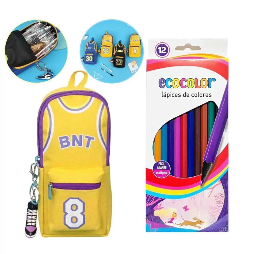 EL PRECIO CORRESPONDE A UN KIT ESCOLAREl kit incluye:1 Cartuchera deportiva (La imagen es a modo ilustracion. el modelo se envia al azar, sin eleccion)12 Lapices de colores