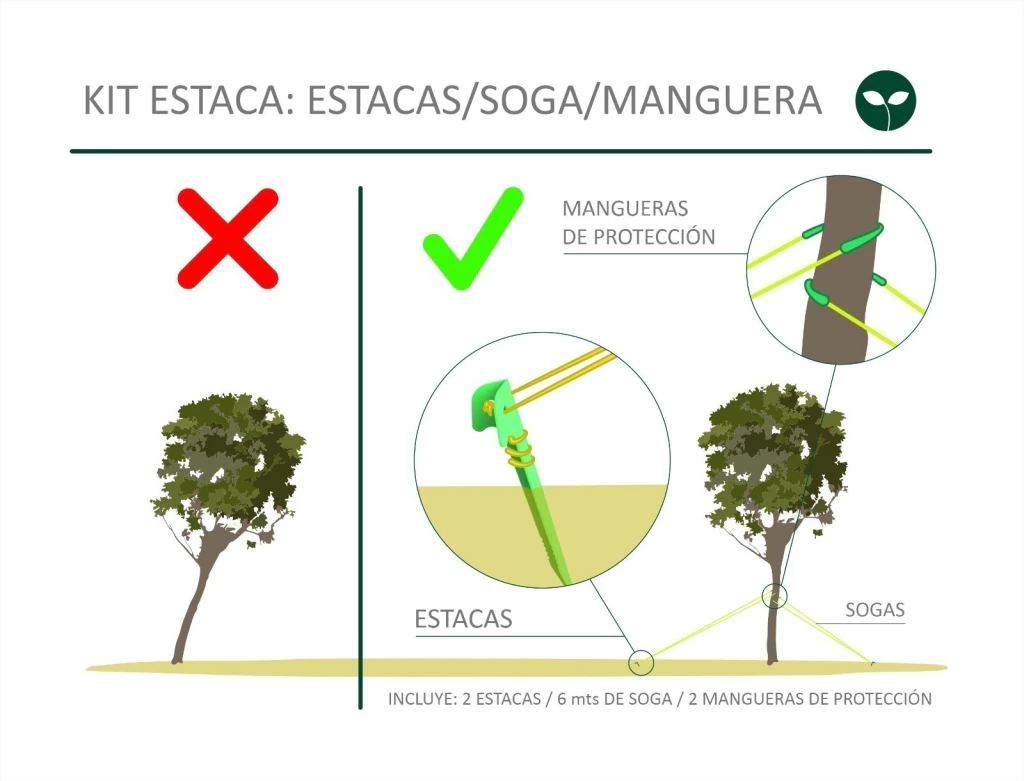 Estacas con cuerda y manguera para enderezar, sujetar, sostener, proteger... Todo en uno. Listos para instalar.