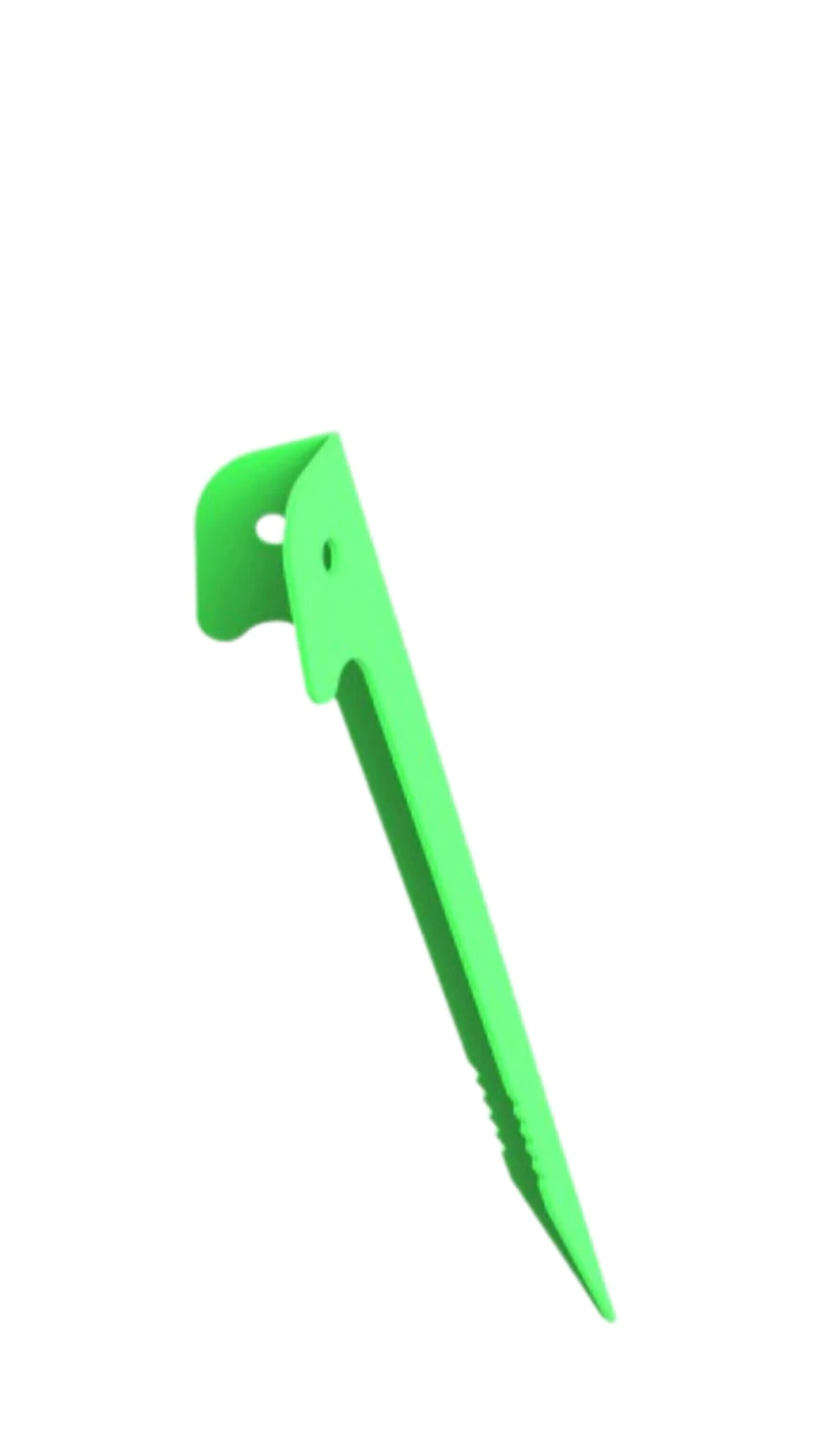2 unidades de estaca con 6m de soga, y 2 recortes de manguera de 30cm de largo cada uno.