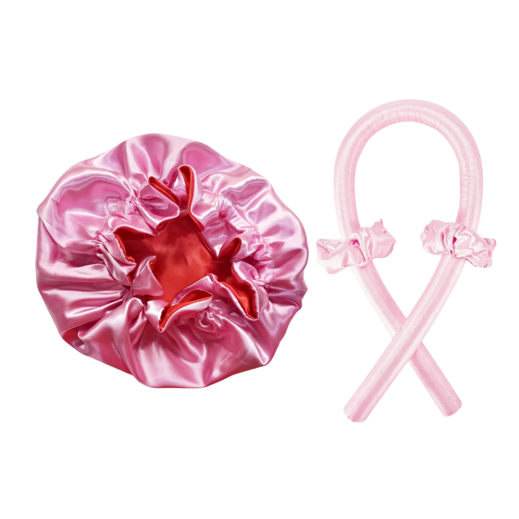 KIT GORRO + BANDA RIZADORA SIN CALOR + 2 SCRUNCHIESApto para todo tipo de cabellos. Ideal para mantener o formar rulos, rizos, bucles y ondas (método curly girl).Material: Tela Raso hiper suave tipo saten o sedaCuida el cabello al momento de dormir, evitando la formación de frizz, el resecamiento o quiebre por la fricción con la almohada. Mantiene la hidratación del mismo y la definición en los cabellos con rulos.LOS COLORES PUEDEN VARIAR SEGÚN STOCK DISPONIBLEGORRO:Lila con azul grisáceo, lila con rosa, lila con verde, rosa con rojo, negro con blanco, marrón con blanco, marrón con dorado, bordo con plateado, azul marino con azul o azul marino con celeste.BANDA Y SCRUNCHIES: negro, azul, azul marino, celeste, bordo, lila, rosa, crema, blanco, marrón, rojo o dorado.El gorro es de doble raso, reversible (se puede usar de los 2 lados).MEDIDAS DEL GORRO:Ancho del elástico estirado / contorno de cabeza: 57 cm aproxDiámetro: 30 cmProfundidad: 25 cmLa banda rizadora ayuda a formar y definir rulos, bucles o rizos en el cabello sin necesidad de aplicar calor ni dañar el cabello.LARGO DE LA BANDA: 100 cmLos scrunchies también se pueden utilizar en todo momento como gomitas / colitas de pelo.Modo de uso de la BANDA RIZADORA: Se recomienda usar con el cabello húmedo, para lograr mejores resultados. Se puede usar después de la ducha o humedeciendo el cabello.Colocar la banda sobre la cabeza y sujetar con un broche o pinza y comenzar a envolver alrededor de la banda el cabello por mechones.Al finalizar sujetar el cabello a la banda con un scrunchie. Repetir el proceso del otro lado.Dejar puesto toda la noche y retirar al día siguiente.