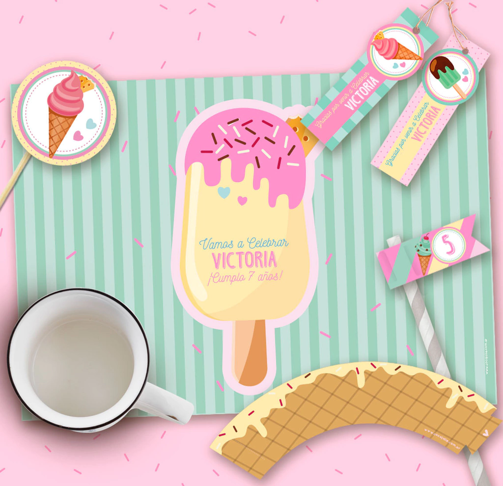 ARCHIVO DIGITAL. Se enviará por mail. Tamaño A4 en su mayor parte.Kit Heladitos. Imprimible PersonalizableIncluye:Tarjetas (editables)Individual A3 para la mesaTarjetitas gracias por venir (editables)Bolsita para souvenir (editable) impresión en dos A4Camioncito para helados (desplegado tamaño A3) Medidas: 12x7,5x10cm aprox)Conitos heladitos tamaño 5x13.5 aprox. (decorativos)Cajita milbox impresion en dos A4 tamaño 9,5x9,5x 15cm aprox.Etiquetas rectangulares multifunción (editable)Etiquetas plegables para mesa dulce o decoración de comida (editable)Banderitas decorativas (algunas editables)MolinetesBanderines Letras (editable)Banderines HeladitosCartel bienvenidos A3(editable)Círculos decorativos 14 cm(editable)Figuras decorativas heladitosTarjetitas Souvenir(editable)Papeles para decorarCajita Pop Corn (editable) dos modelos tamaño A4Toppers (editables) y wrappersCandy Bar: Etiquetas circulares 4 cm (editable), etiquetas para turrón (editable), etiquetas Rodhesias 2 modelos (editable), etiquetas Tita 2 modelos (editable), etiquetas chocolatines, envoltorio para marroc, etiqueta Cierra bolsita (editable).Poster Pizarra Tamaño A3 (editable)Se enviará a tu e-mail un link para que descargues el kit apenas se acredite el pago.El pago con tarjeta de crédito se acredita en el acto. Si pagas a través de rapipago, pagofácil o transferencia, el pago puede tardar hasta 48hs. hábiles en acreditarse.ATENCIÓNSI DESEAS UTILIZAR LOS PRODUCTOS DE COCOJOLIE PARA UN EMPRENDIMIENTO COMERCIAL / NEGOCIO, POR FAVOR SELECCIONA LA LICENCIA COMERCIAL DESDE LA SECCIÓN PRODUCTOS, LICENCIA COMERCIAL.Los productos tienen aplicada la web de CocoJolie en algún lugar del diseño.No se pueden modificar en programas de diseño, Word o Excel. Son para editar e imprimir exclusivamente utilizando Adobe Acrobat. Podrás descargarlos gratis desde aquí: http://get.adobe.com/es/readerLa compra no transfiere los derechos de propiedad intelectual de los imprimibles de este sitio.