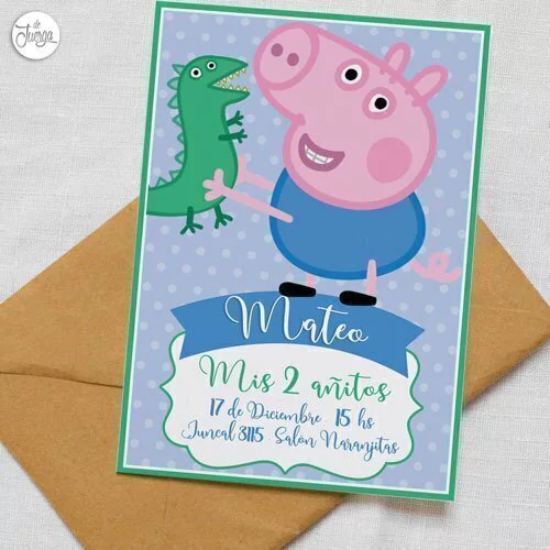 Kit Imprimible George Pig. Deco y Candy Bar PersonalizadoCONTIENE:• Invitaciones Personalizadas.• Invitación Digital.• Banderines. Personalizado.• Banderines Feliz cumple• Wrappers para cupcakes. Personalizado.• Circulos multiuso de 3,5, 5 y 8cm. Personalizadas.• Individual de mesa. Personalizado.• Cono. Personalizado.• Cartel para puerta. Personalizado.• Banderines sorbete.• Cierra Bolsa• Envoltorio tita. Personalizado.• Envoltorio Rhodesia. Personalizado.• Envoltorio Marroc. Personalizado.• Envoltorio Chocolatin. Personalizado.• Envoltorio Paraguita. Personalizado.• Envoltorio Turrón. Personalizado.• Envoltorio Botellita. Personalizado.• Cajita pochoclera. Personalizado• Bolsita de Papel. Personalizado.• Carteles mesa dulce. Editable.• Colgante Gracias por Venir. Personalizado.• Fondos estampados para decoración.• Piramide Centro de mesa.• Etiquetas multiusoSE ENVÍA APROXIMADAMENTE DENTRO DE LAS 48HS después de recibir los datos para personalizar.Formato de los archivos: jpg, tamaño A4.NO ES EDITABLE. ES PERSONALIZADO.Sirve para impresora hogareña o para imprenta. Algunos diseños tienen nuestro logo (pequeño)Si los necesitas impreso consultanos los precios según la cantidad de niños.