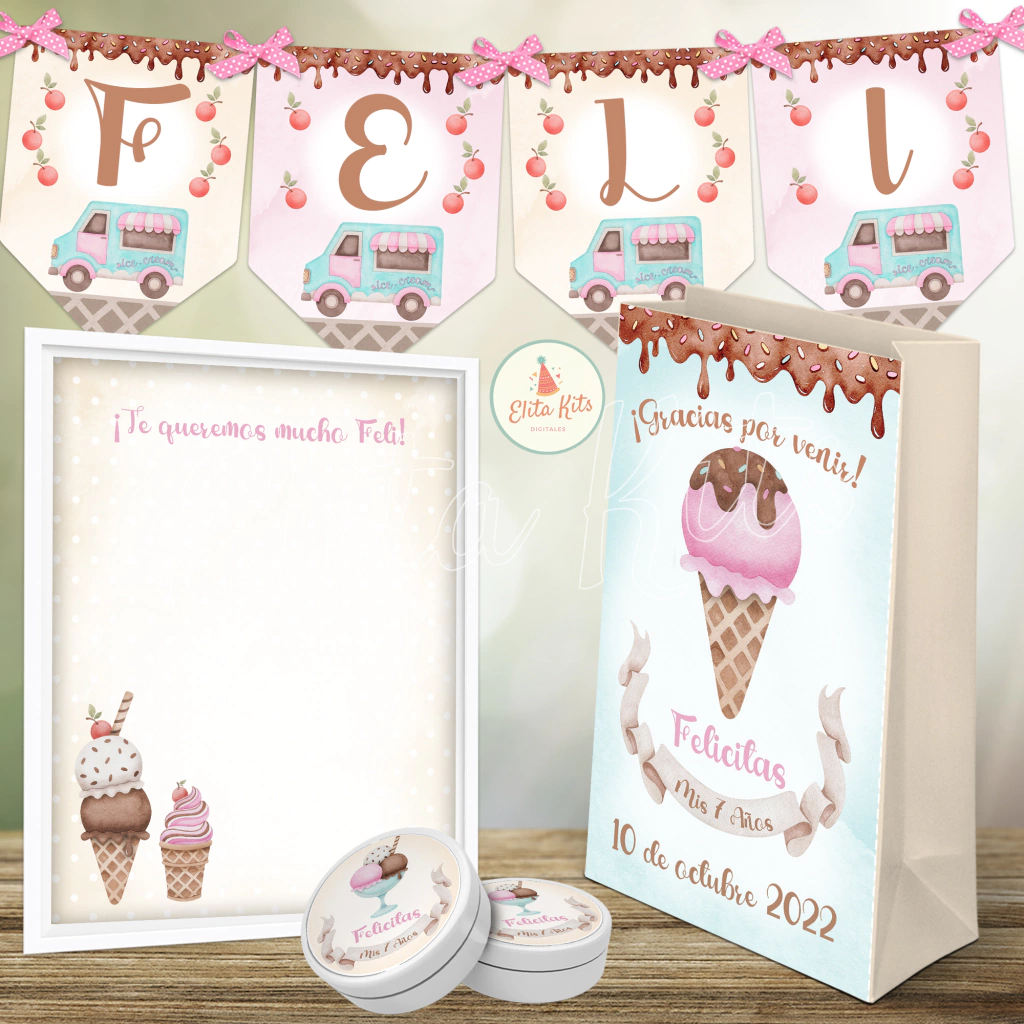 Kit Imprimible Fiesta Helados Acuarelas, Producto Digital