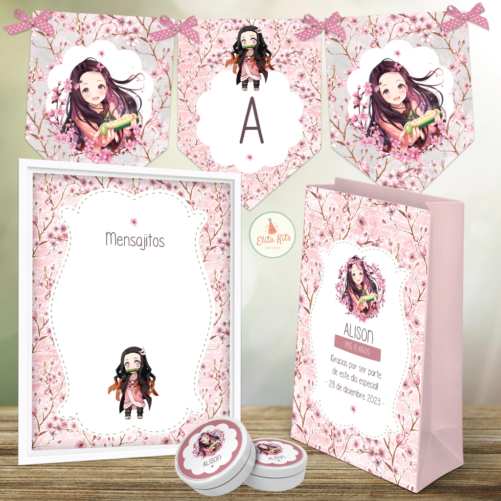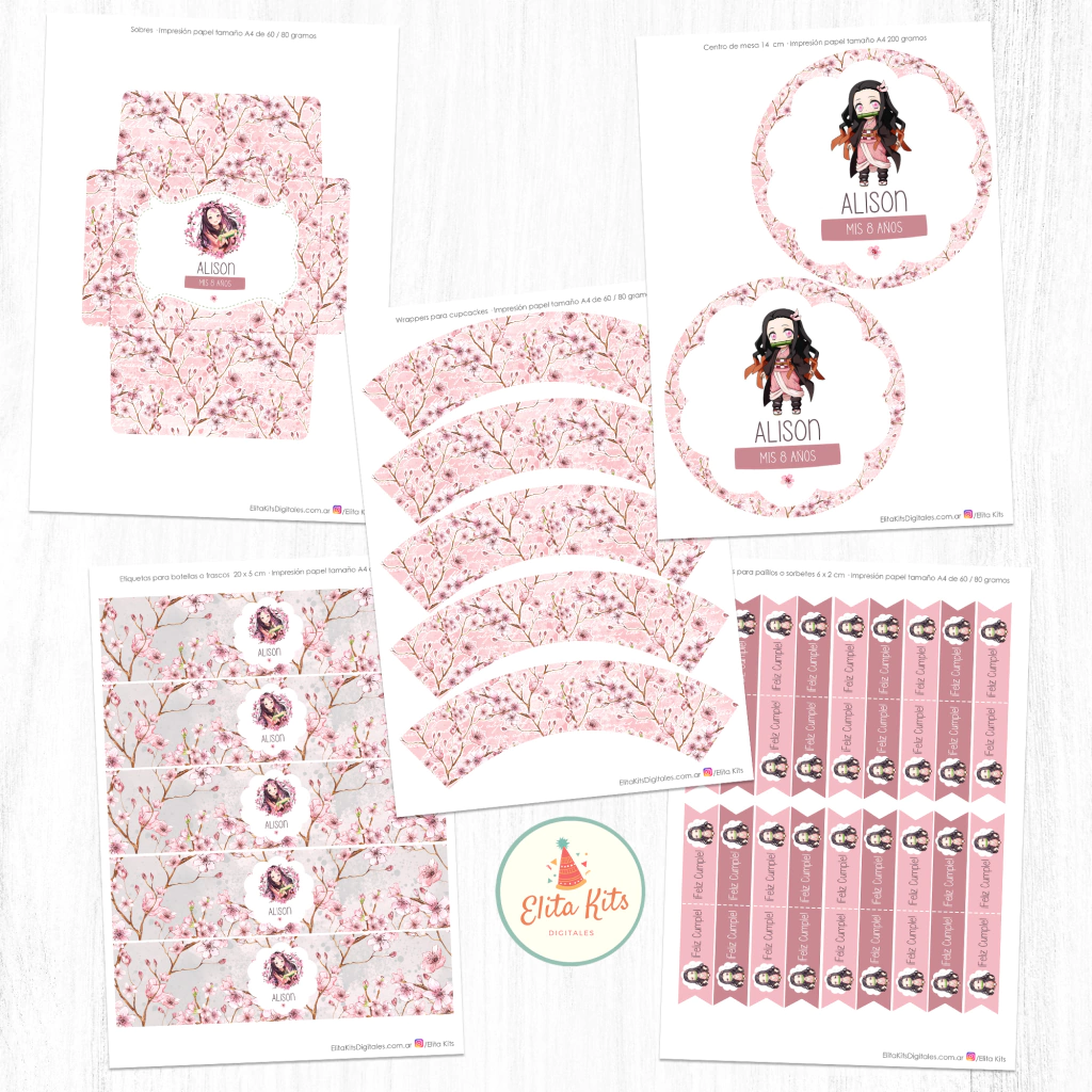 Kit imprimibleNezukoCONTENIDO COMPLETO DEL KITDECORACION DE LA FIESTA• Cartel de bienvenida (1 x hoja)• Poster para firmas (1 x hoja)• Mantelito Individual (1 x hoja)• Banderines "Feliz Cumpleaños Nombre" (2 x hoja)• Banderines decorativos punteros / separadores (2 x hoja)• Figuras grandes decorativas (1 x hoja)• Wrappers (envoltorios) para cupcakes (5 x hoja)• Toppers para cupcakes (5 cm) (15 x hoja)• Etiquetas para botellitas / frasquitos (20 x 5 cm) (5 x hoja)• Cajita para pochoclo o golosinas (5 x 5 x 11 cm) (1 x hoja)• Banderitas sorbetes (18 x hoja)• Tarjetas para comida o sitio (4 x hoja)• Papeles estampados (1 x hoja)• Bolsita para golosinas (9 x 14 x 4 cm) (1 x hoja)TARJETAS• Invitaciones Imprimibles (9 x 12 cm) (4 x hoja)• Invitacion Whatsapp• Estampita de recuerdo (si es evento religioso) (7 x 12 cm) (4 x hoja)• Tarjetas "Gracias por venir" (6 x 8 cm) (9 x hoja)• Tarjetas "Gracias por venir colgantes" (4 x 8 cm) (12 x hoja)• Sobres para las invitaciones (1 x hoja)CANDY BAR• Envoltorios para Tita (4 x hoja)• Envoltorios para Rhodesia (2 x hoja)• Envoltorios para chocolatín 8 gr. (4 x hoja)• Envoltorios para marroc (16 x hoja)• Envoltorios para Turrón / Oblea (2 x hoja)• Envoltorios para Yapa (5 x hoja)• Toppers para bolsitas golosinas (cierre de bolsitas) (6 x hoja)• Círculos de 4 cm. (cabsha, moneditas de chocolate, paragüitas, etc.) (24 x hoja)• Círculos de 6 cm. (para paletas, alfajores, pastilleros, etc.) (12 x hoja)• Círculos de 8 cm. (para decorar multiuso) (6 x hoja)• Círculos de 14 cm. (para decorar torta / multiuso) (2 x hoja)