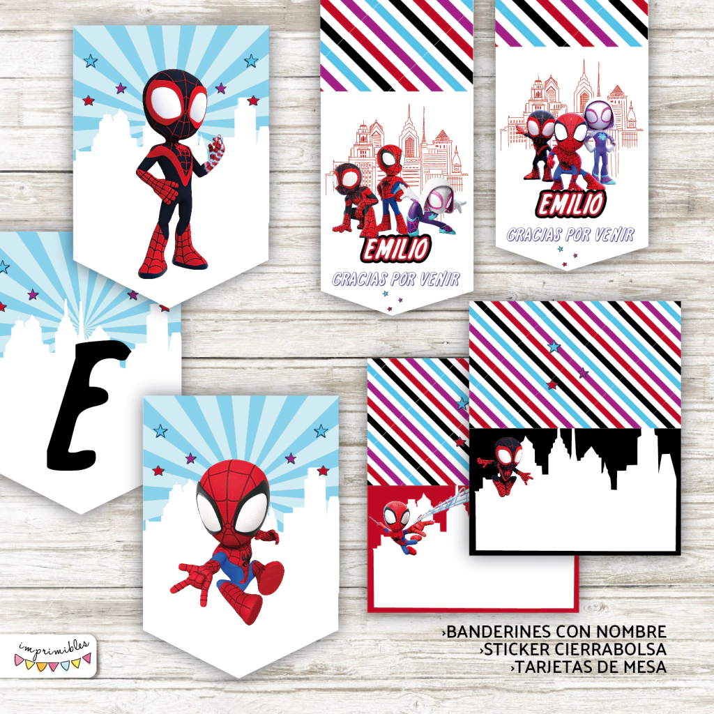 Kit Imprimible Spidey y sus sorprendentes amigosTextos personalizados - Listo para imprimir- No se envían archivos editables¡Te ofrecemos un Kit personalizado para que puedas imprimir en tu casa todo lo que necesitás para armar una fiesta inolvidable!El Kit incluye:~Invitaciones~Invitación para Whats App~Tarjetas de agradecimiento~Tarjetas de mesa multiuso~Banderines con nombre~Banderitas multiuso~Banderitas para torta~Afiche de Bienvenida para portaretratos 15 x 21 cm~Candy bar (tipo faja): Envoltorios para chupetoncito, Tita, alfajores, turrón, Yapa, chocolate, Rhodesia, monedas, Mogul, Paraguitas, marroc.~Envoltorio para cupcakes~Círculos multiuso de 4 y 6 cm~Bolsita para golosinas~Caja para golosinas~Caja para pochoclos~Caja Milk~Marcadores de vasos~Etiquetas para botellas o servilleteros~Toppers para lápices o sorbetes~Etiquetas cierrabolsa~Bandejitas 10 x 15~Bonetes-----------------------------------Antes de comprar te recomendamos leer lasPREGUNTAS FRECUENTESpara despejar tus dudas y evitar reclamos posteriores.-El kit se envía dentro de las 48 horas de recibidos los datos para editarlo.-Está completamente prohibida laREVENTA o INTERCAMBIOde los kits de Imprimibles en plataformas de venta online o en redes sociales, sea este con o sin fines de lucro.