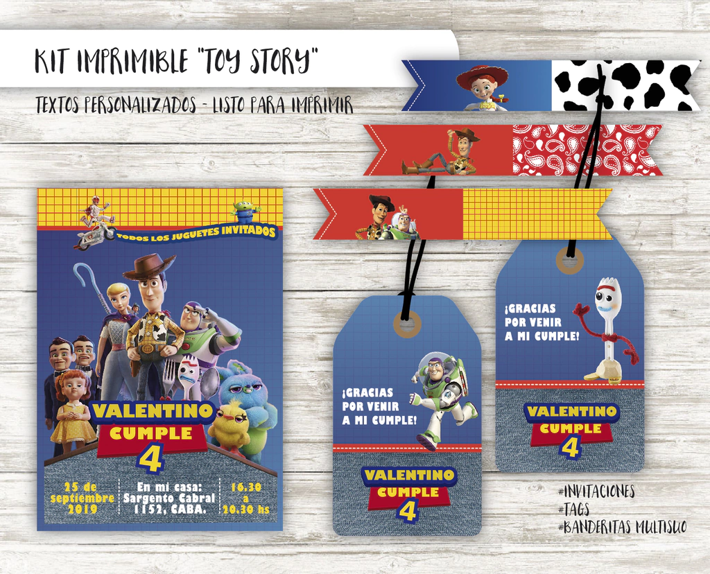 Kit imprimible Toy StoryTextos personalizados - Listo para imprimirNo se envían archivos editables¡Te ofrecemos un Kit personalizado para que puedas imprimir en tu casa todo lo que necesitás para armar una fiesta inolvidable!El Kit incluye:~Invitaciones~Invitación para WhatsApp~Tarjetas de agradecimiento~Tarjetas de mesa multiuso~Banderines con nombre~Banderitas multiuso~Banderitas para torta con nombre~Papeles estampados~Afiche de Bienvenida para portaretratos 15 x 21 cm~Candy bar(tipo faja): Envoltorios para chupetoncito, Tita, alfajores, turrón, Yapa, chocolate, Rhodesia, monedas, Mogul, Paraguitas, Marroc~Envoltorio para cupcakes~Círculos multiuso de 4 y 6 cm~Bolsita para golosinas~Caja para golosinas~Caja para pochoclos~Figuras de adorno~Etiquetas para botellas o servilleteros~Toppers para lápices o sorbetes~Etiquetas cierrabolsa~Bandejitas 10 x 15~Bonetes------------------------------------------------------------------------Antes de comprar te recomendamos leer lasPREGUNTAS FRECUENTESpara despejar tus dudas y evitar reclamos posteriores.-El kit se envía dentro de las 48 horas de recibidos los datos para editarlo.-Está completamente prohibida la REVENTA o INTERCAMBIOde los kits de Imprimibles en plataformas de venta online o en redes sociales, sea este con o sin fines de lucro.