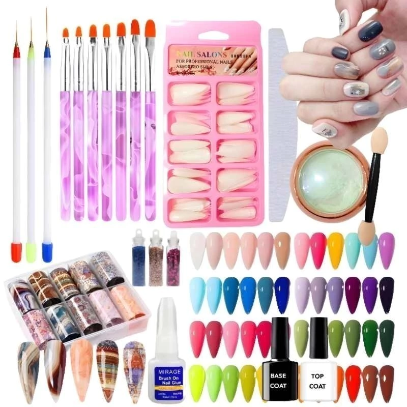 Kit inicial para decoracion de uñas , incluye:3 Pinceles linner7 Pinceles1 Cajita de tips (forma y color surtido)1 Lima1 Polvo holografico (color surtido)3 glitter (color y forma surtido)3 Esmaltes semipermanentes en colores surtidos1 Base coat1 Top coat1 Cajita de papel foil (diseño surtido)1 Nail glue para pegar tips