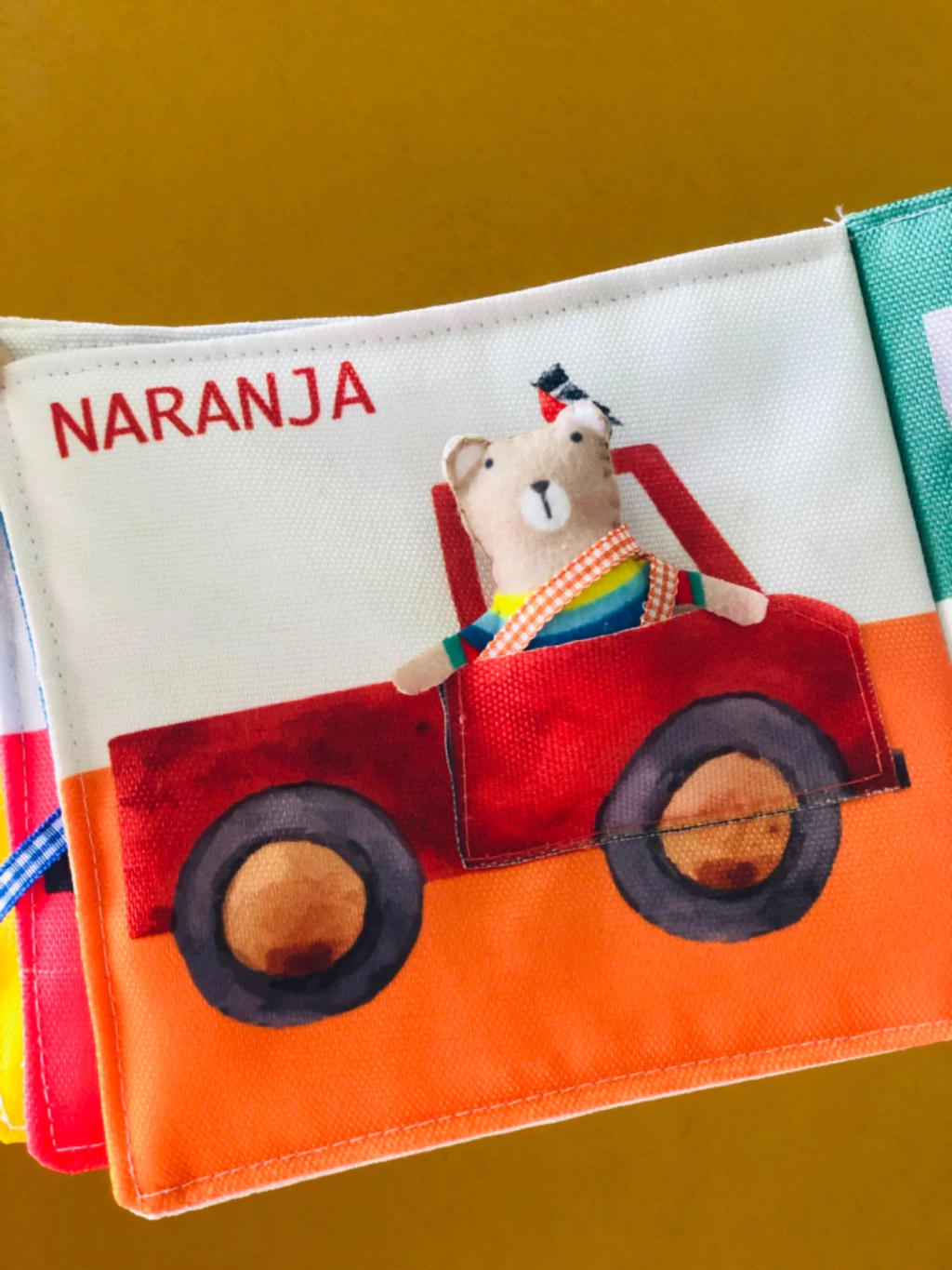 Los colores son esenciales en cada etapa de la vida, necesitamos de los colores para entender muchas cosas y tambien para percibir emociones, los colores son un lenguaje propio y como tal una herramienta, un buen amigo.En este nuevo libro didáctico vamos a hacer un breve repaso por los colores pero viajando en increibles medios de trasnporte (que todos aman si!), vamos además a aprender la importancia del usos del cinturón de seguridad, simulado por las cintas de colores que encontraremos dentro de cada vehículo. Un libro didáctico indispensable para la bibiloteca o el juguetero de nuestros peques.Este es un viaja para aprender los colores jugando y entender al mismo tiempo de forma lúdica la importancia del cinturón de seguridad.Lavable18 x 18Orejita de agarre para el carritoIncluye ositoSúper mochi, liviana y segura para llevar al jardín, bolsillo con cierre incluído