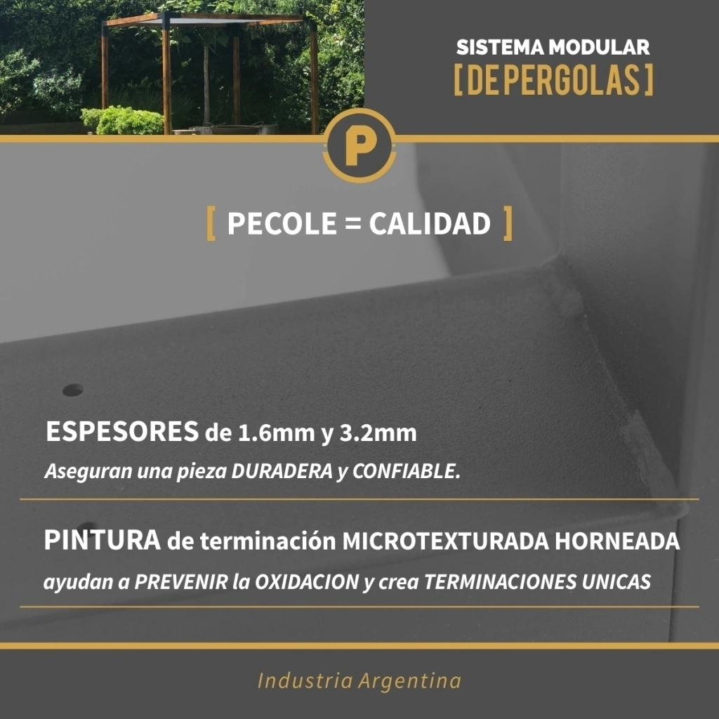 Construi tu porpia Pergola! 3 Modulo - SueloCon este Kit de soportes metálicos vas a poder armar una pérgola con mínimos conocimientos y herramientas. Combinando los mismos con maderas de diferentes largos, podrás construir una pergola que se adapte a tus necesidades y así lograr un nuevo espacio en tu hogar de manera rápida, simple y económica. Los módulos son combinables entre si y esto hace que no tengas limites.Los soportes vienen para 2 medidas de madera: (Tenes las opciones al momento de comprar)3x3 Pulgadas (75x75mm)4x4 Pulgadas (95x95mm)Y podes elegir entre 2 tipos de bases para el suelo: (Tenes las opciones al momento de comprar)Base para Atornillar (Se adapta a suelos firmes y lisos, ideal para terrazas)Base para Cementar (Aptas para cualquier tipo de suelo, hay que realizar perforacion de 30cm y llenar con cemento)El kit incluye:- 8 Bases- 4 Codos a 90°- 4 Te Combinable- Tornillos y tapas plásticas para los mismos- 50 Tarugos y tirafondos de 10mm--------------------------------------------PECOLENos especializamos en fijaciones metálicas para tu proyecto. Estamos en Ing. Pablo Nogues (Zona Norte) Un equipo atento a tus consultas. Somos Pecole!-------------------------------------------ENVIOSEl kit entra en una caja de 60x40x30cm y pesa 23kg aprox• Capital Federal y Gran Buenos Aires envíos en 24/48hs (Lunes a Viernes)• Resto del país (Hasta 9 días hábiles)• Retira en nuestro deposito-------------------------------------------FORMAS DE PAGO• Hacemos Factura A• MercadopagoEsperamos su compra!