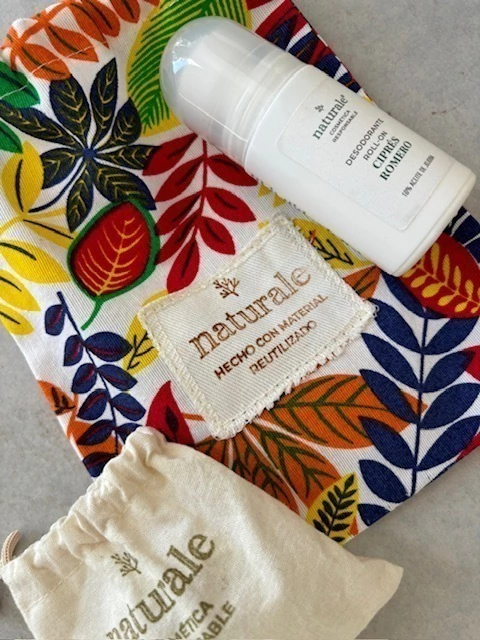 BÁLSAMO CORPORAL ANTINFLAMATORIO- Aceite vegetal de Coco:Hidratante, antioxidante y reparador.- Manteca de Karité:Es un agente curativo, hidratante, antioxidante y regenerador.- Aceite esencial de Enebro:Calmante, ayuda a disminuir la inflamación. Mejora la circulación sanguínea y linfática.- Aceite esencial de Romero:Estimula la circulación sanguínea.- Aceite esencial de Lavanda:Regenerante, cicatrizante y antiséptico. Ayuda a disminuir la inflamación.-Vitamina E: antioxidante.DESODORANTE ROLL ONContiene:- Aceite vegetal de Jojoba:Humectante, limpiador y regenerante.- Aceite esencial de Ciprés:Desodorante. Inhibe el crecimiento de las bacterias causantes del mal olor.- Aceite esencial de Romero:Inhibe el crecimiento de microbios.- Glicerina vegetal:Humectante.NOcontiene alcohol, siliconas, sales de aluminio, bicarbonato, parabenos, sulfatos ni esencias artificiales. Todos componentes que suelen estar en fórmulas de los desodorantes.Agitar antes de usar.Deslizar la bolilla sobre la piel 2 o 3 veces y de arriba hacia abajo, cubriendo toda la axila, asegurando que gire la bolilla y se humedezca con el producto.Aplicar luego del baño y antes de vestirse, con la piel limpia y seca. Dejar secar bien antes de poner la ropa.De uso diario.BOLSA DE TELA DE MATERIAL REUTILIZADO(la foto es a titulo ilustrativo, varian los colores y diseños)