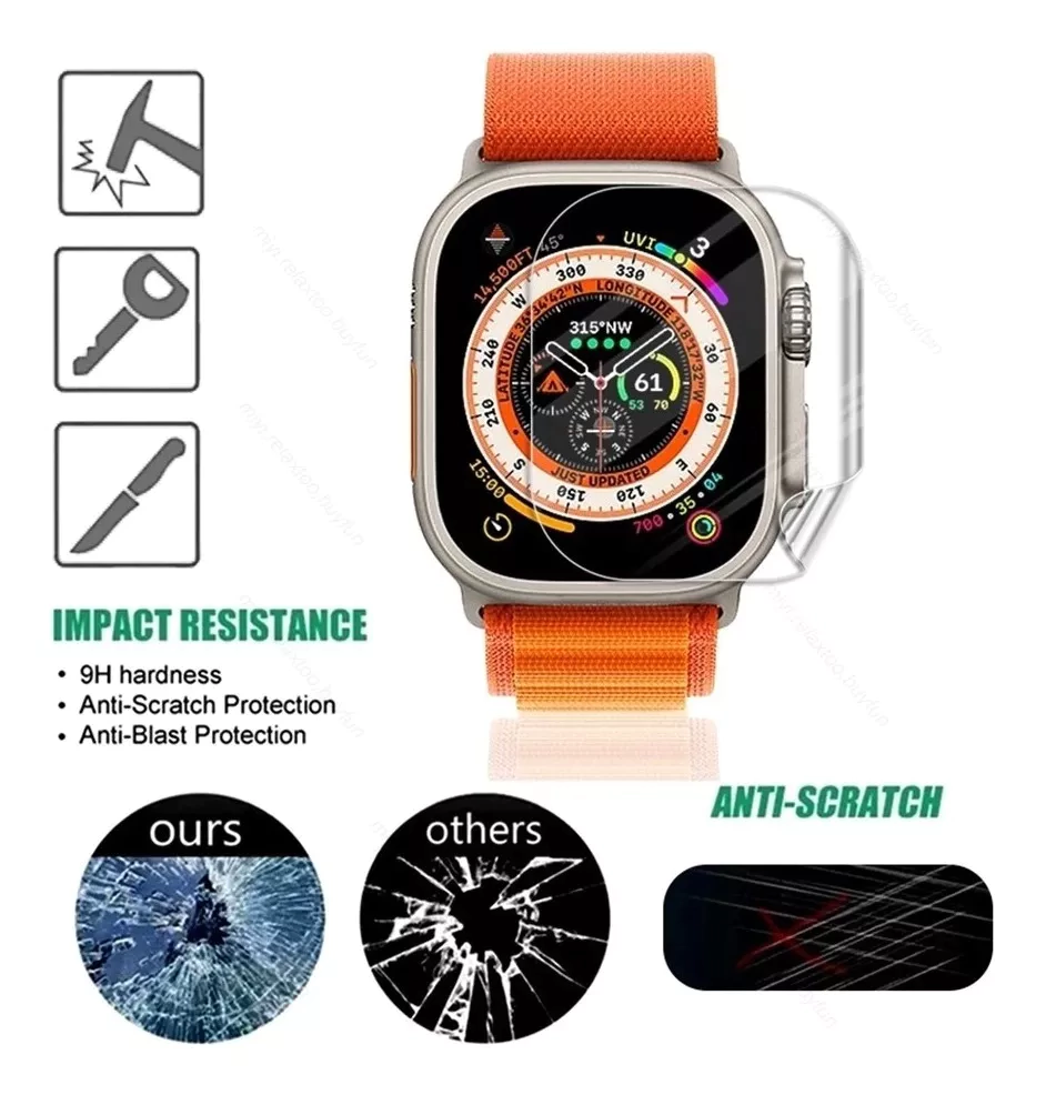 Kit X3 Film Hydrogel pantalla para Apple WatchMaterial: HydrogelCompatible con Apple Watch Serie Ultra49mmLAS IMAGENES SON MUESTRA REAL DE COMO QUEDA COLOCADO EL ARTICULOIMPORTANTE: NO SE REALIZAN CAMBIOS POR BURBUJAS QUE HAYAN QUEDADO EN LA INSTALACION- - - -Para ver fundas compatibles con Apple Watch Series 7 de 44mm y 40mm.https://www.5ld.com.ar/apple-watch/fundas-y-bumpers/44mm-y-40mm-series-4ta-5ta-6ta/- - - -Envíos a todo el país5LDTienda de Accesorios