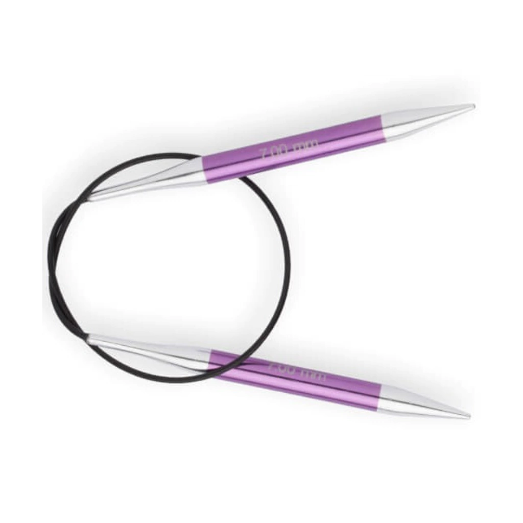 Agujas de tejer Circulares Knitpro ZING de 40 cmsLas agujas de tejer circularesKnitProde la serieZINGestán fabricadas en aluminio pulido con acabados perfectos y colores vibrantes. Son muy livianas en las manos y tienen unas puntas perfectas y resistentes, los que las hacen ideales para todo tipo de hilado y proyecto. Las uniones de las agujas con los cables son también perfectos, evitando que se produzcan enganches de fibras! Sus cables, de alta tenacidad, no se enroscan ni retuercen, lo que no solo hace más facil su uso, sino que además las hacén mas cómodas para guardar una vez terminado el proyecto!El largo total de estas agujas de40 cmlas hace ideal para tejer medias, puños o cuellos!Dispone de 16 grosores distintos para elegir el que mejor se adapte a tu labor:2,00 mm : Coral2,25 mm : Ambar2,50 mm : Granate2,75 mm : Naranja3,00 mm : Jade3,25 mm : Esmeralda3,50 mm : Verde Pistacho3,75 mm : Amatista4,00 mm : Azul Zafiro4,50 mm : Celeste5,00 mm : Rubí5,50 mm : Chocolate6,00 mm : Púrpura6,50 mm : Coral7,00 mm : Morado Amatista8,00 mm : EsmeraldaLa longitud del TOTAL de estas agujas es de40 cm(cable + agujas)El precio publicado corresponde auna aguja circular(dos puntas unidas por un cable fijo)KNITPROes la empresa de agujas y accesorios de tejer que está siendo furor en el mundo en estos momentos. Hace años que ha irrumpido con fuerza con diseños y calidad vanguardista con un rango de precios medio. Con presencia en 68 países, KNITPRO se encuentra en permanente evolución gracias a la comunicación constante con sus clientes en todo el mundo para adaptar sus nuevas colecciones a las necesidades de las nuevas técnicas y materiales que van surgiendo.