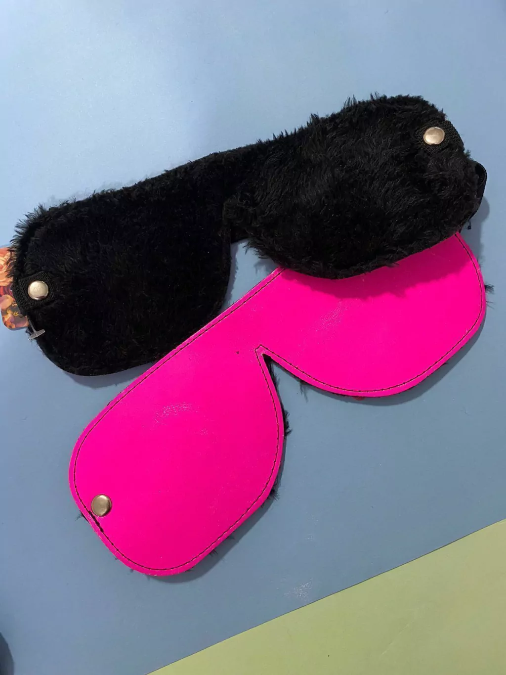 KS25351Antifaz de cuero fucsia ciego con peluche negro reversible. De un lado simula cuero y del otro tiene peluche9240902621