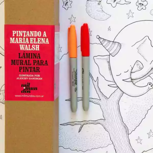 Pintando a María Elena Walsh:: ilustrada por Alexiev GandmanEnorme. Original. EnmarcableImpresa en tinta negra sobre papel obra de 120 gMedida desplegada: 41 x 118 cmSe presenta en una bonita caja individual de 7 x 7 x 42 cmInvita a la actividad compartida y regala muchas horas de juego.Al tener línea de horizonte, se puede colgar en la pared.Especial para pintar en familia, permite de dos a cuatro participantes simultáneosMarcadores no incluidos