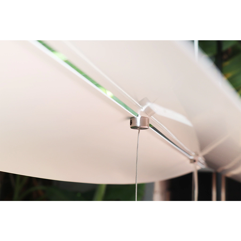 - Tensores de acero y cable cristal. La altura de la pantalla es regulable, para graduar la intensidad de la luz.