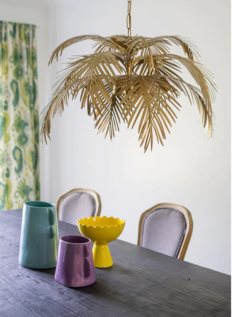 LÁMPARA COLGANTE PALM 4 LUCES¡ENTREGA EN 60 DÍAS!LaLámpara ColgantePalm, cuenta con 4 luces y está realizada en hierro y chapa. Hace parte de nuestra nueva colecciónNiza. Su diseño crea un juego de luces y sombras súper original, aportando calidez y frescura a los ambientes. Ideal para usar en comedores diarios y livings!Medidas: Diámetro: 0,80 m x Altura: 0,80 m.Cantidad de Luces: 4.Colores disponibles para encargar:Óxido, Blanco, Negro, Platil y Dorado.¡Incluye cadena de 1,00 metro y florón en chapón de 0,15 m!ACLARACIÓN: Producto realizado de forma artesanal, puede variar la disposición de las hojas manteniendo siempre la esencia!RETIRO EN SUCURSAL GRATUITO:- Arenales 1257, Recoleta, Capital Federal.IMPORTANTE:- El costo del envío a domicilio o punto de retiro es a cargo del cliente y varía según el destino.- Una vez efectuada la compra nos contactaremos para coordinar el método de envío más conveniente.