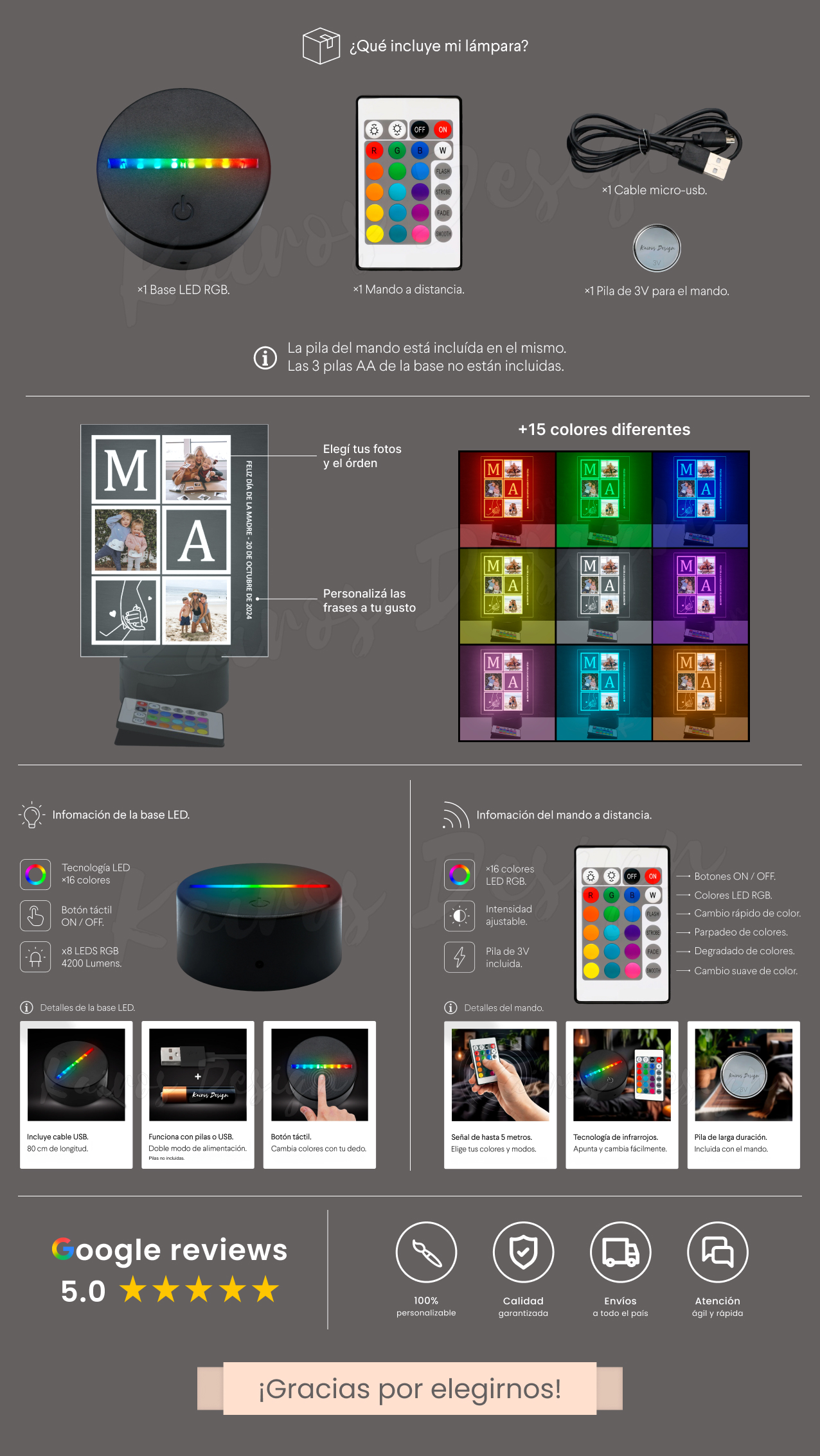 Lámpara led personalizada con fotos | Día de la Madre | Modelo 1