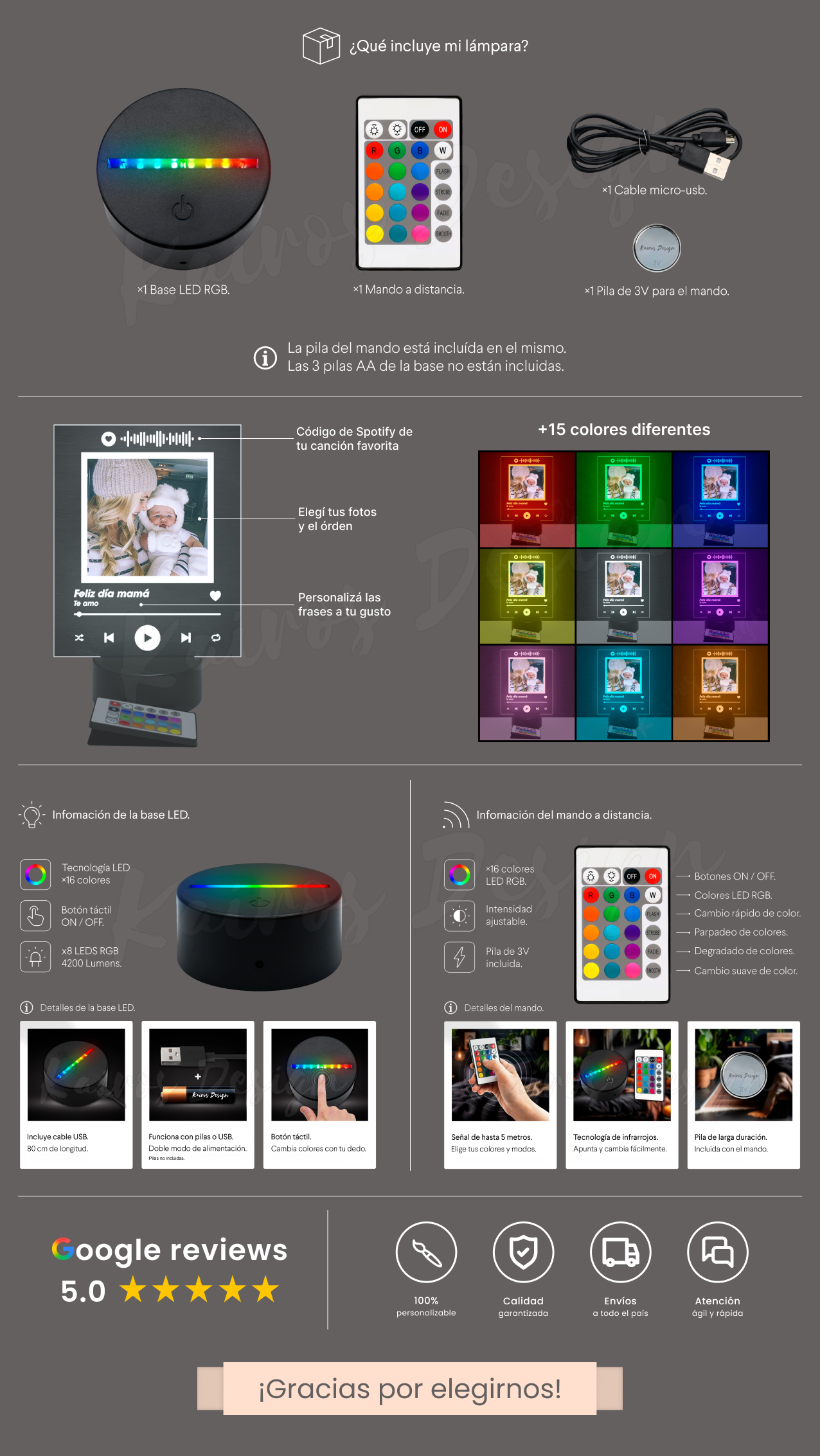 Lámpara led personalizada con fotos | Día de la Madre | Modelo 4