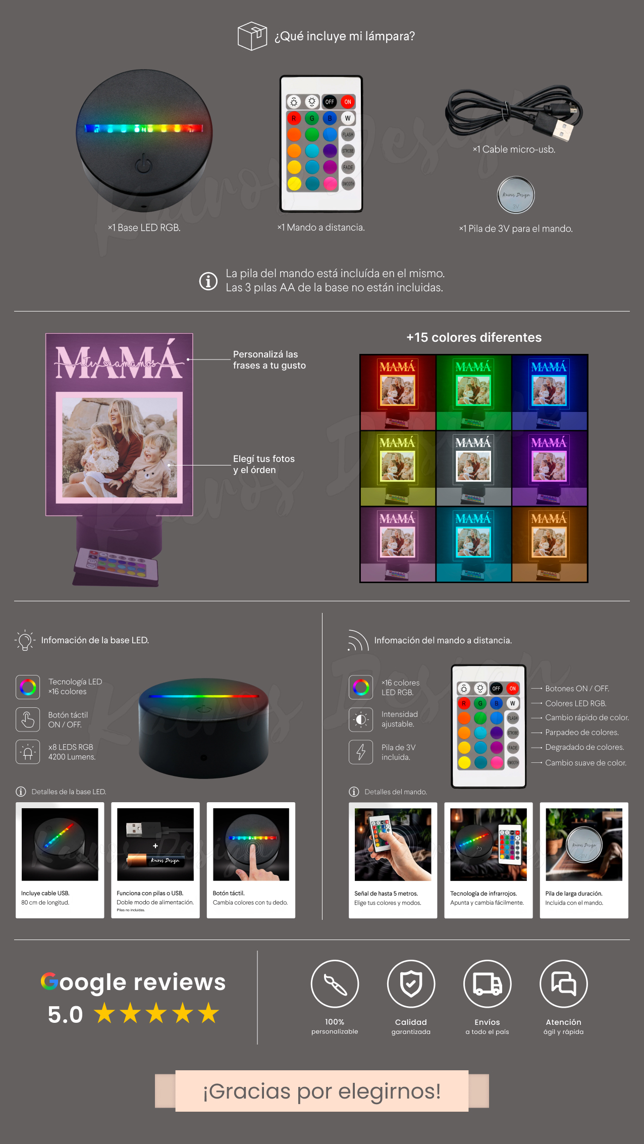 Lámpara led personalizada con fotos | Día de la Madre | Modelo 8