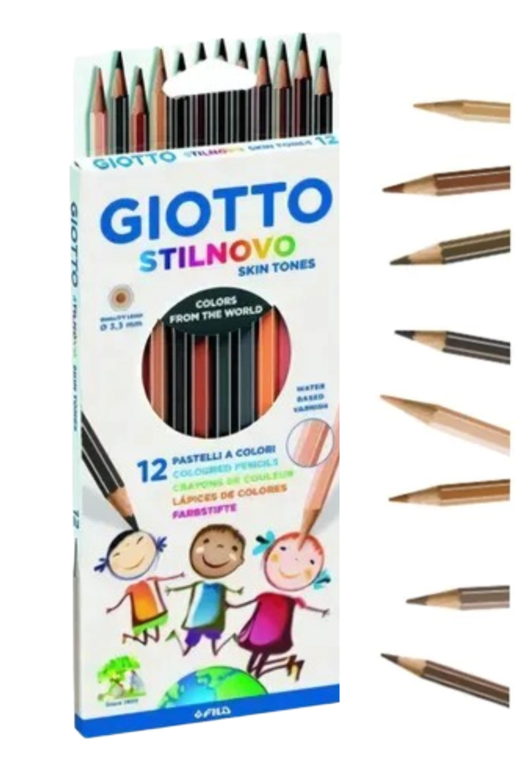 Lapices de colores skin tones (tonos de piel)Barniz de base de aguaMina de 3,3 mmTextura de alto pimento y colores vivacesCuerpo de 18 cm resistente a roturasCuerpo barnizado del color de la mina con detalles dorado